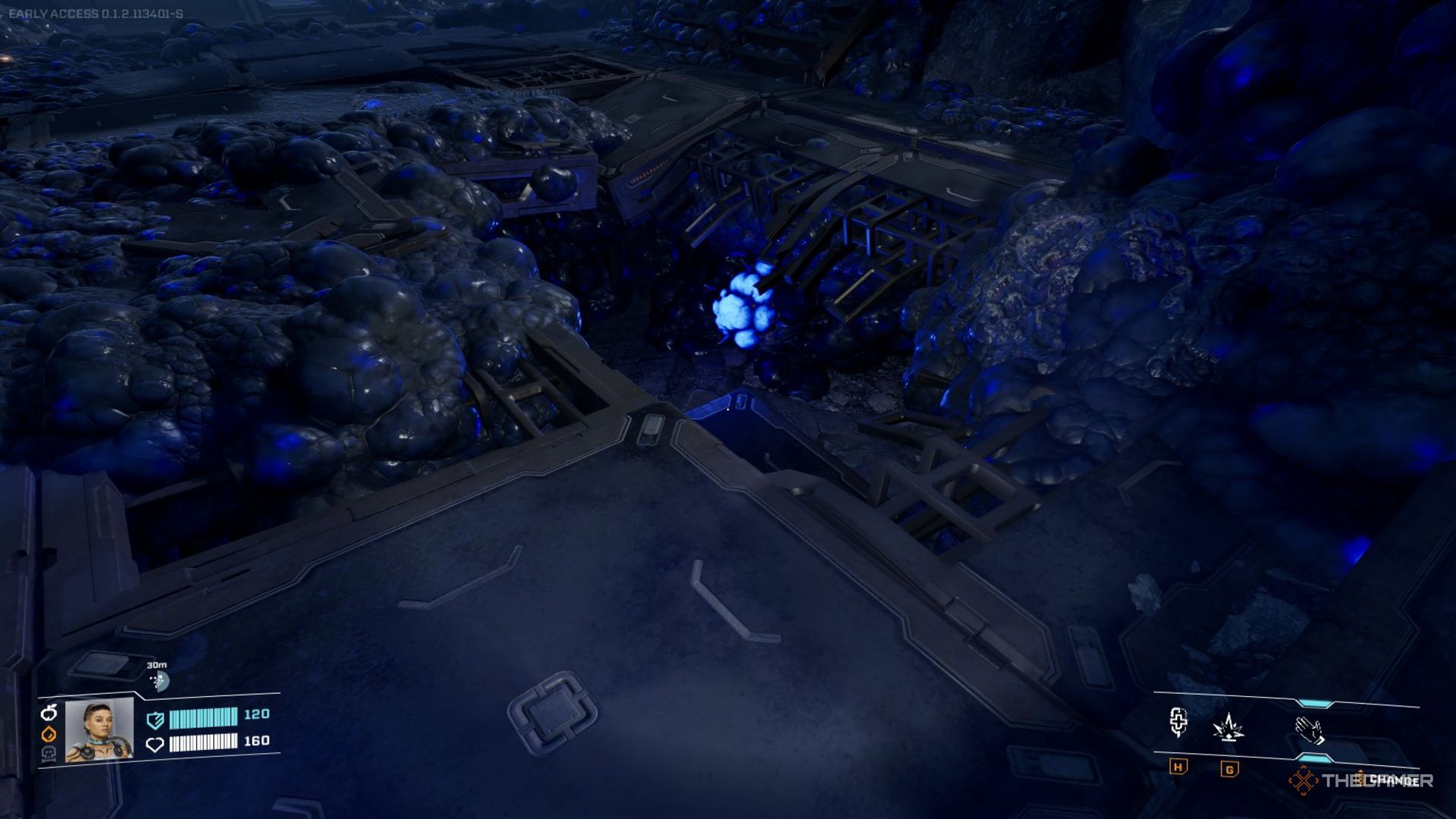 Во время исследования Arcadia-7 вы обнаружите старые, неиспользуемые шахты и сломанные механизмы, покрытые странным голубым веществом. Это вещество создает инфекцию, которую нельзя устранить, пока вы окружены голубым туманом. Чтобы избавиться от инфекции, вам нужно найти и уничтожить ее источник: голубой мешок, спрятанный где-то на механизмах или внутри зданий.