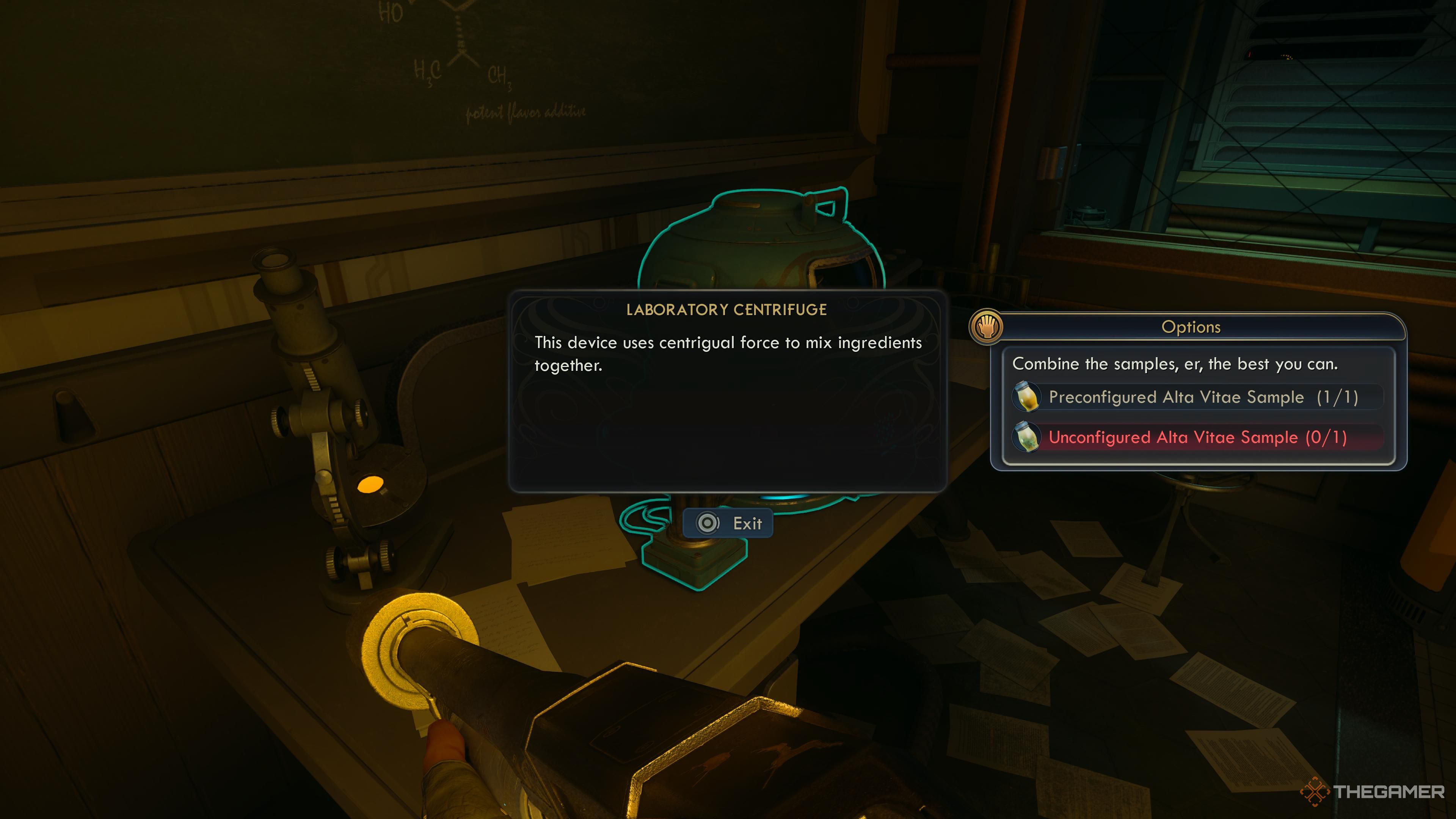 Вы можете объединить эти две пробы в центрифуге, но имейте в виду, что полученная смесь будет случайной. Точный исход зависит от вашего навыка Наука, и без хорошей характеристики Наука вы, скорее всего, получите базовую, усреднённую смесь. Лучший возможный исход — уникально оптимизированная смесь, но для этого требуется более высокий навык Наука.