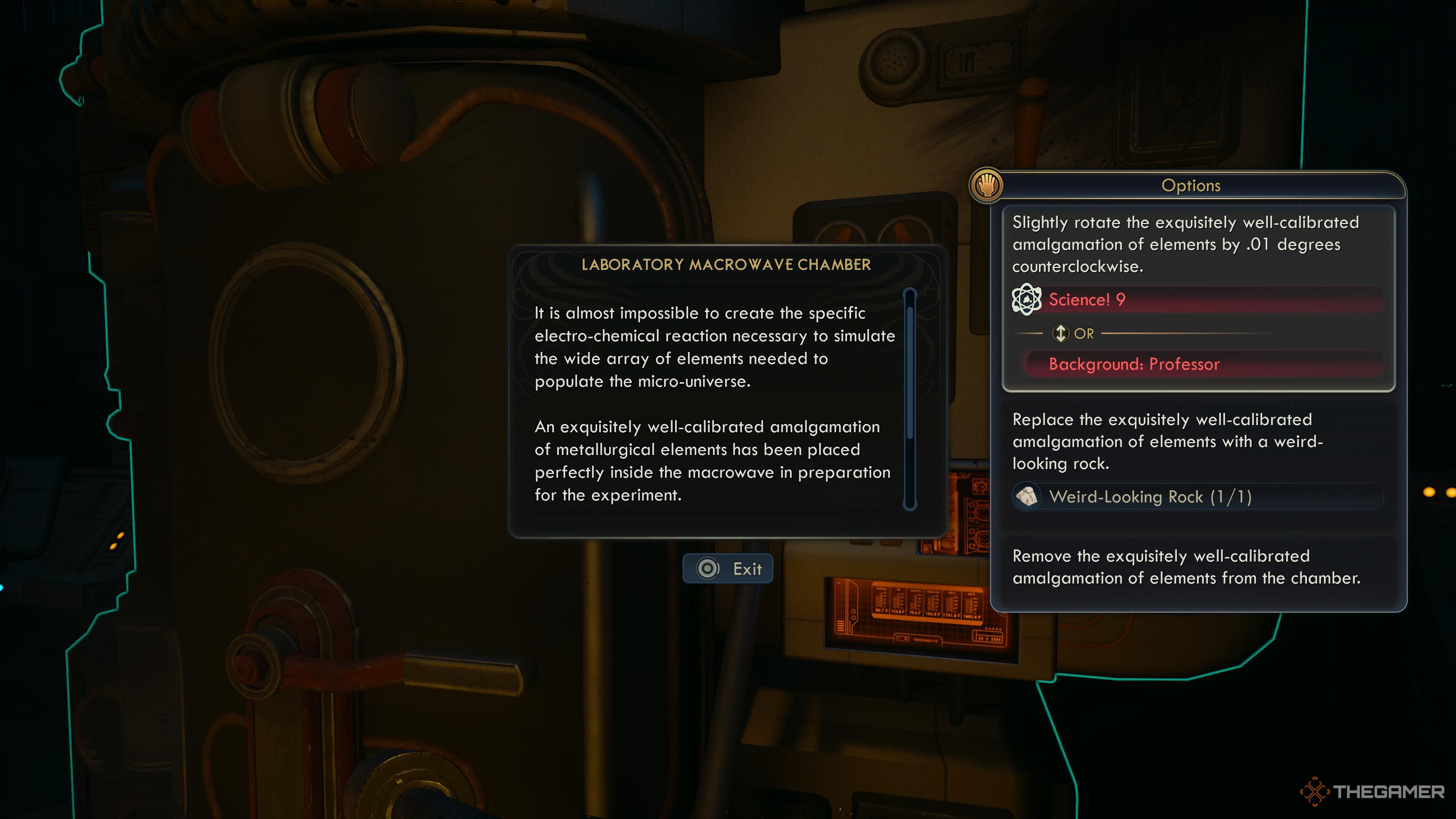 Вам нужно будет незаметно изменить эксперимент самостоятельно. Не меняйте его слишком сильно, иначе Брун поймет, что с ним покопались. Если ваши навыки Речи и Науки достаточно высоки, идеальная настройка не обязательна, но она критически важна, если вы хотите решить все мирным путем.