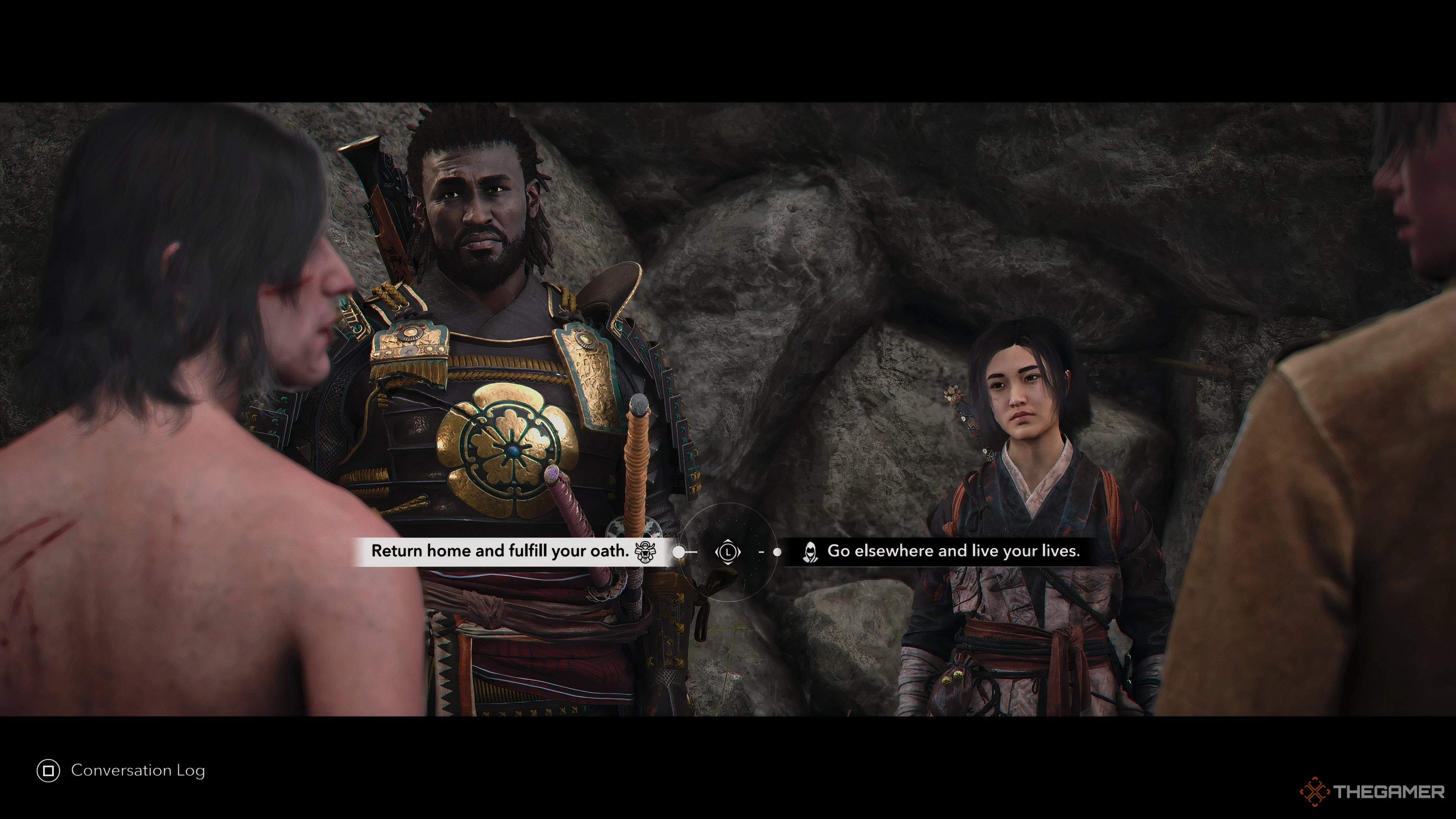 Как только Ясуке встречается с Наоэ и другими, вам нужно решить, должен ли Готуин вернуться домой и сдержать своё обещание, или начать новую жизнь где-нибудь ещё – с Адой, сопровождающей его, в зависимости от вашего выбора. С точки зрения сюжета, лучше всего, чтобы Готуин вернулся домой и исполнил свою клятву. Эта концовка кажется наиболее последовательной событиям квеста на данный момент и тому, как продолжается история.