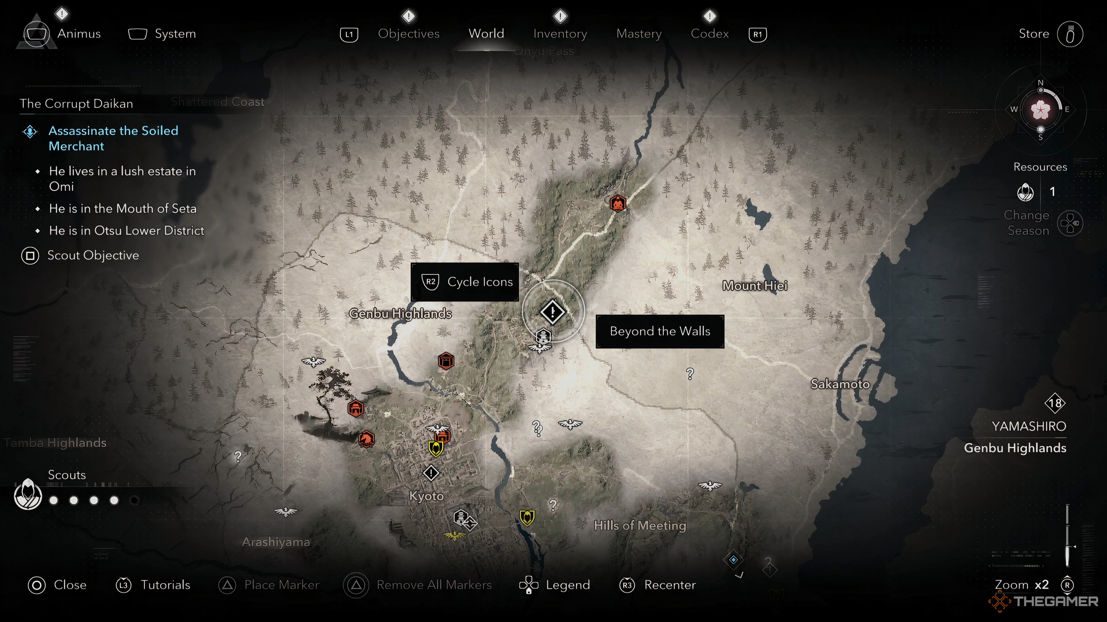 Чтобы начать сюжетную линию «Атака титанов» в Assassin’s Creed Shadows, отправляйтесь к маркеру задания с названием ‘Beyond the Walls’. Вы найдёте его в центральной верхней части региона Ямасиро, недалеко от дороги, отделяющей его от Ёми.