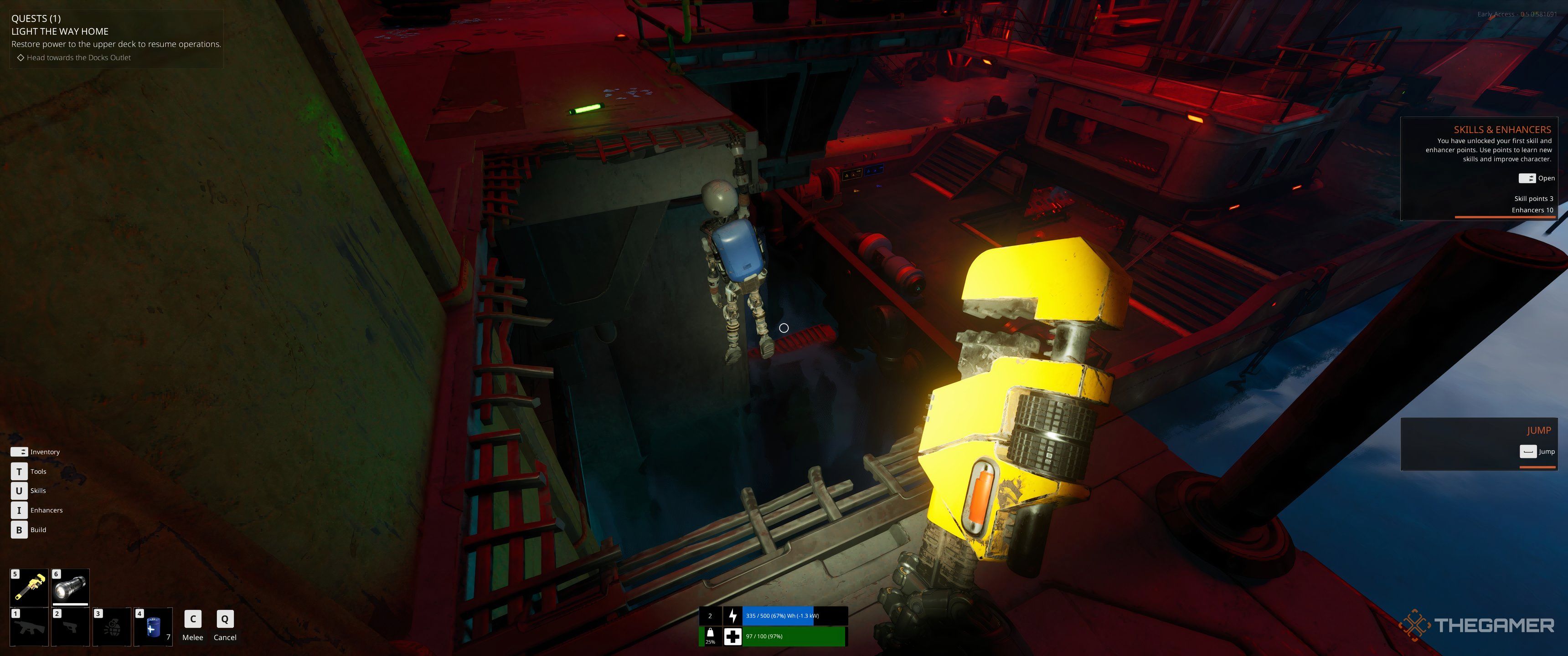 Основная сюжетная линия легко прослеживается благодаря светящимся маркерам на полу. Вы найдёте их перед прыжками и возле вентиляционных шахт, которые нужно проверить. Эти маркеры также чётко показывают вам путь к важным локациям, которые вам нужно посетить, чтобы завершить квесты в этой области.