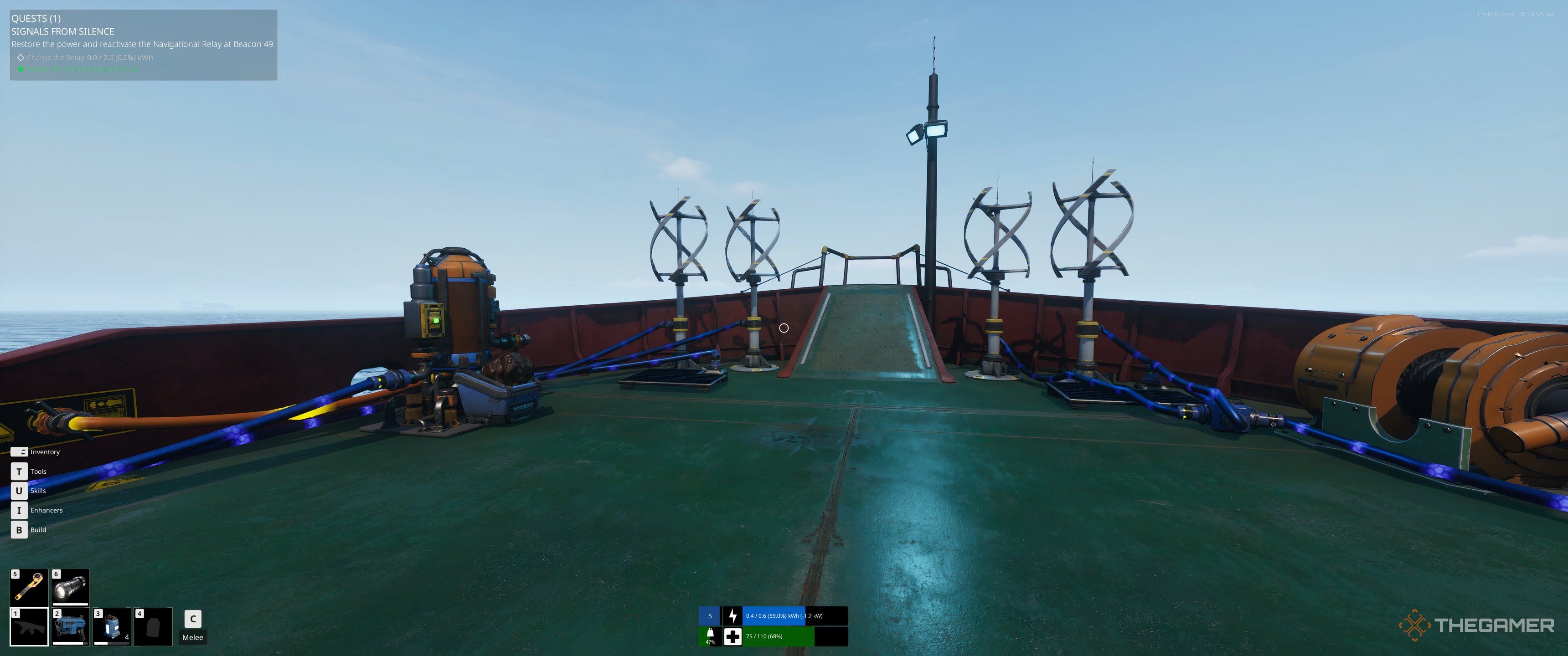 Энергия — самый важный ресурс в игре, поэтому вам стоит начать её производство сразу же. Вы можете изучить создание солнечной панели на втором уровне навыков, а ветряной турбины — на третьем. Мы настоятельно рекомендуем изучить эти рецепты крафта, а также как изготавливать электрические кабели, как можно скорее.