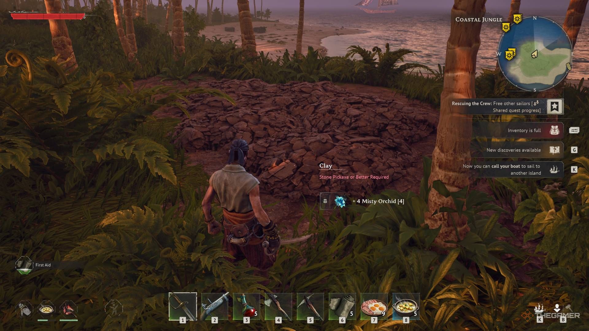 Глина является ключевым ресурсом в Windrose, используемым для создания таких вещей, как глиняные горшки и бутылки, а также для строительства более сложных структур. Вас попросят найти глину, когда вы разблокируете алхимический стол и начнете создавать целебные зелья – которые вам определенно понадобятся по мере продвижения к более сложным островам. Вы даже можете наткнуться на нее во время исследования начальных прибрежных джунглей.