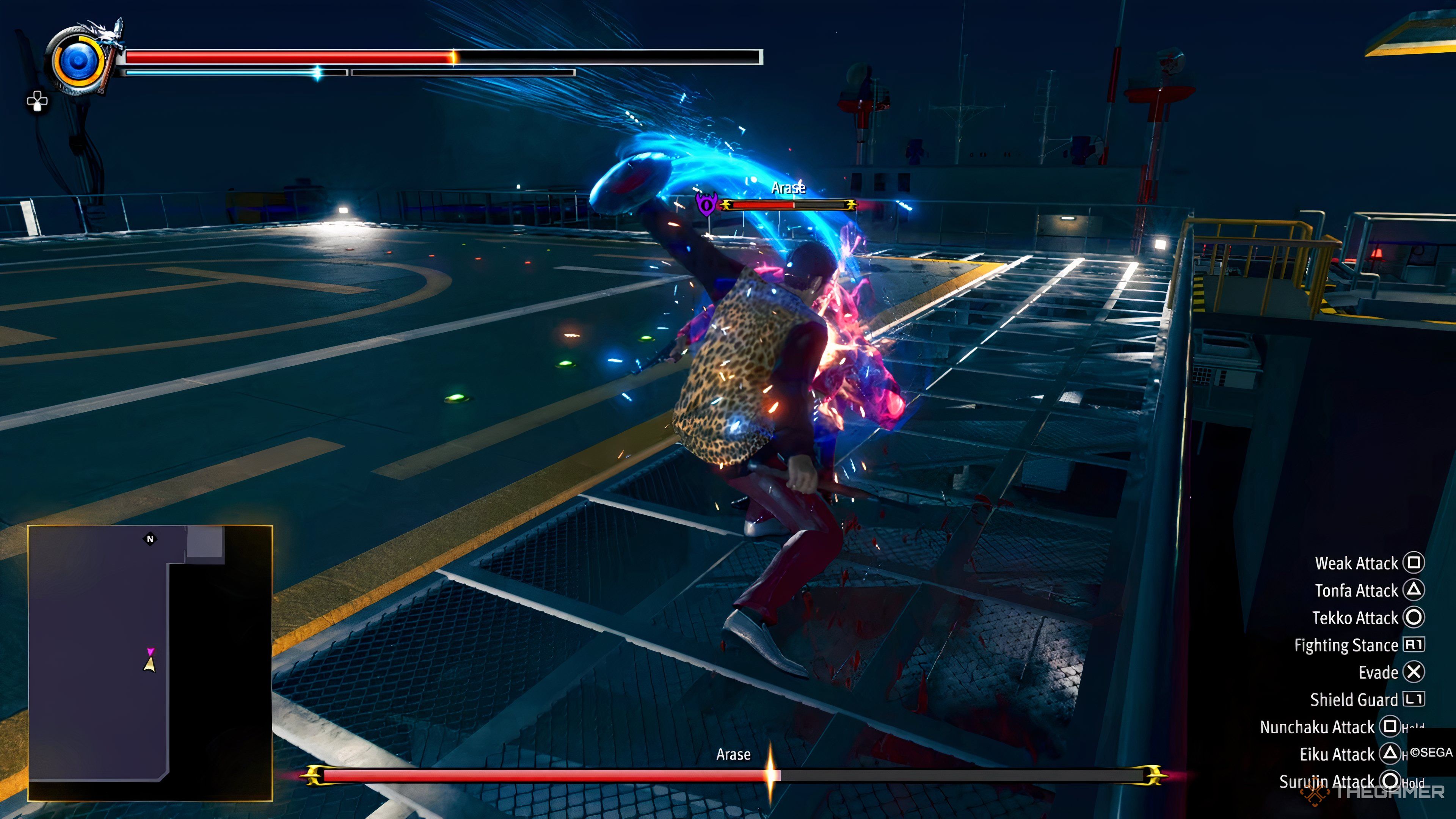 Казуто Арасе может быть сложным боссом, потому что у него много здоровья, а его удары ногами могут выбить вас из равновесия. Однако, если вы изучили способности стиля Рюкю, вы можете защититься от его стрельбы, блокируя и парируя.