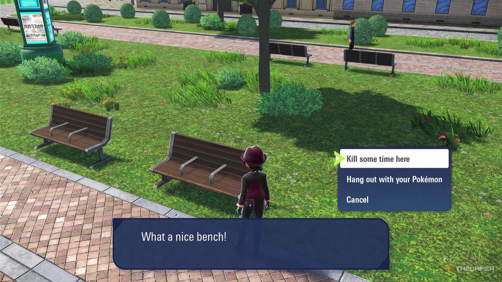 Если вы хотите быстро найти Голетта в Pokemon Legends: Z-A, вам нужно найти скамейку и выбрать опцию «Поболтать, чтобы убить время» при взаимодействии с ней.