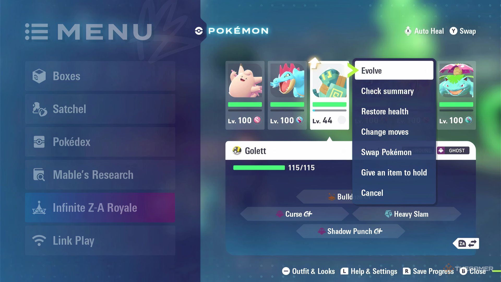 Когда будете готовы, выберите опцию ‘Evolve’ для вашего Golett на 43-м уровне или выше. Это даст вам Golurk, которого вы сможете добавить в свой Pokedex в Pokemon Legends: Z-A. Golurk может стать полезным товарищем по команде, пока вы продолжаете проходить сюжет Mega Dimension DLC, если захотите.