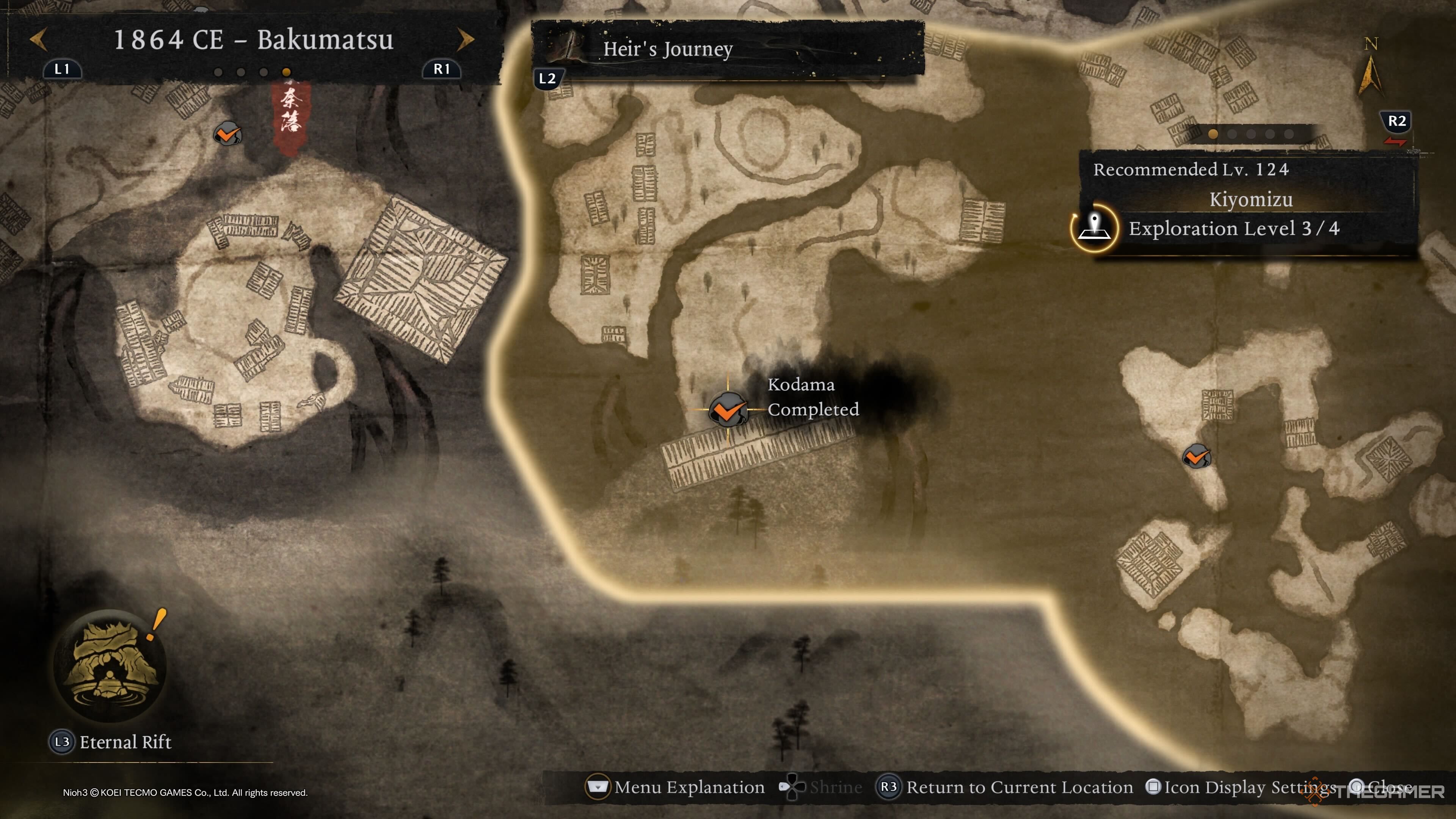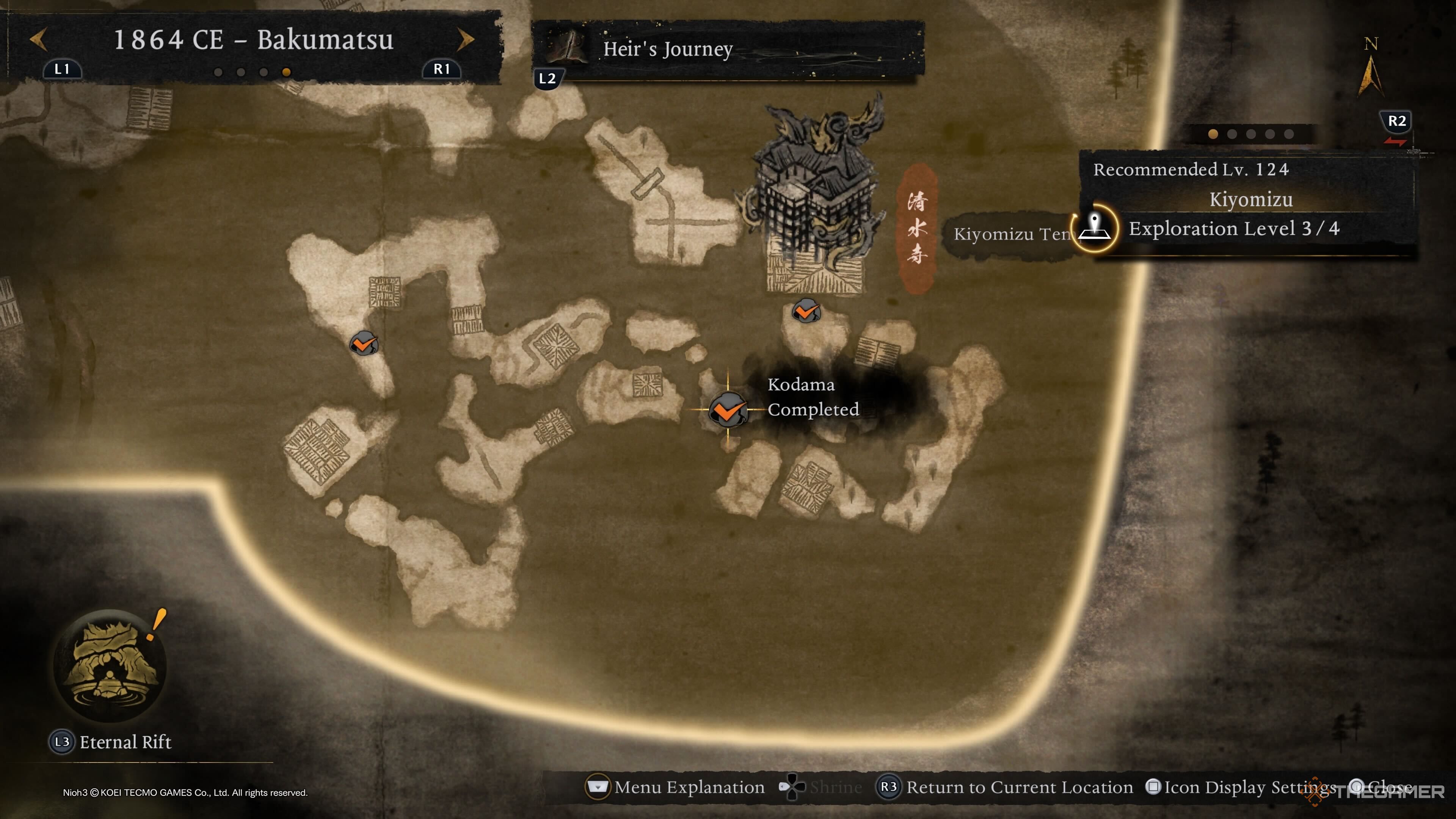 Первый Кодама Киёмидзу находится на левой стороне области, в отличие от остальных, которые расположены ближе к храму Киёмидзу. Появитесь в святилище Разрушенного Храма и затем повернитесь и идите направо. Вы увидите Кодаму рядом с большим Ёкаем, которого вам нужно победить. |