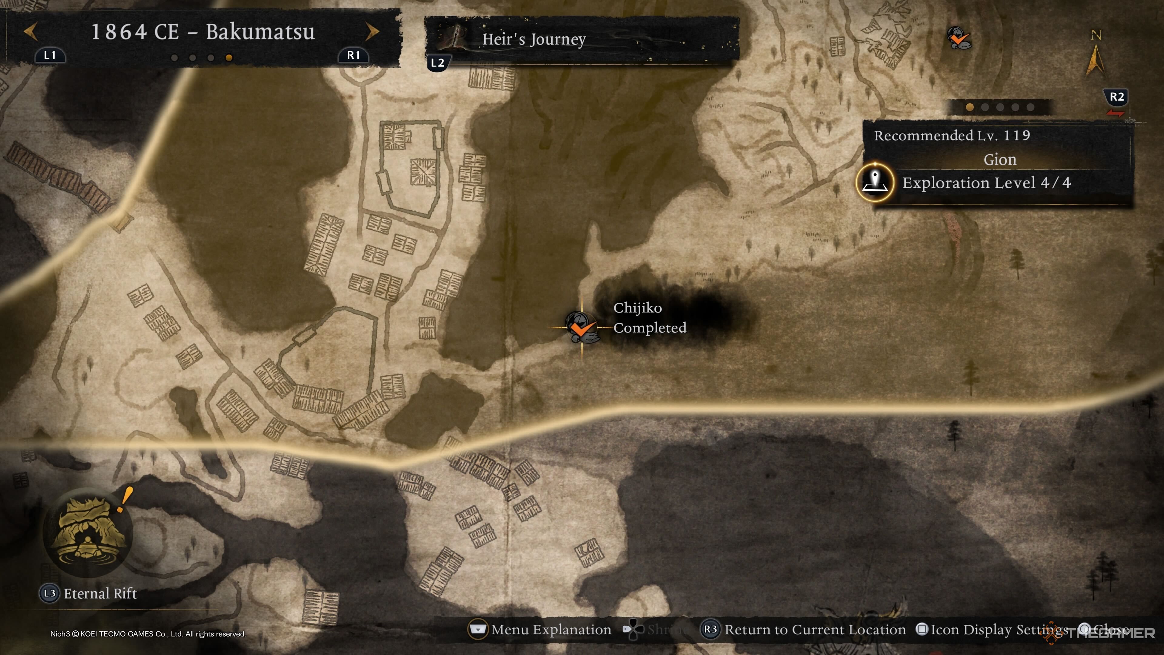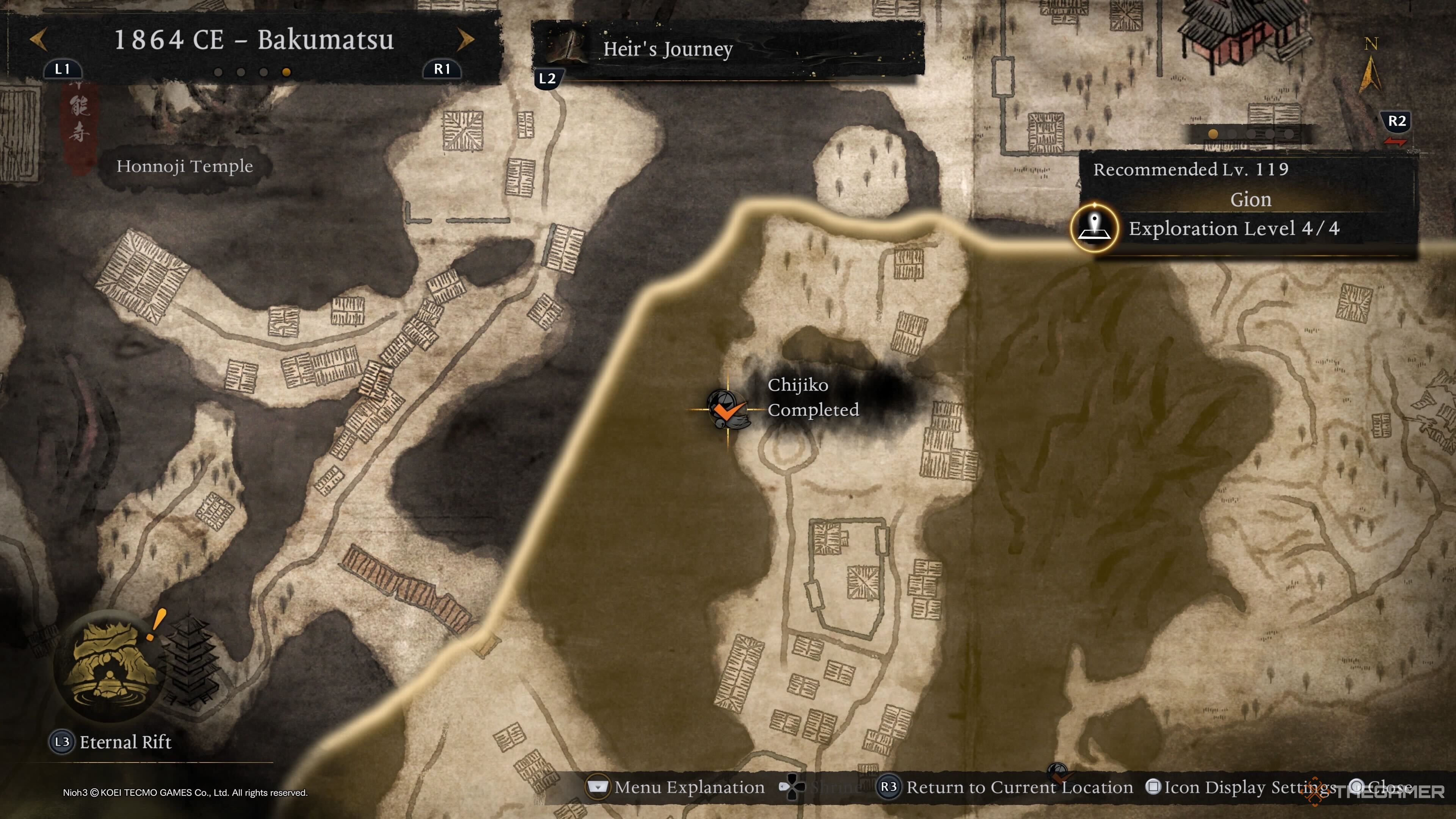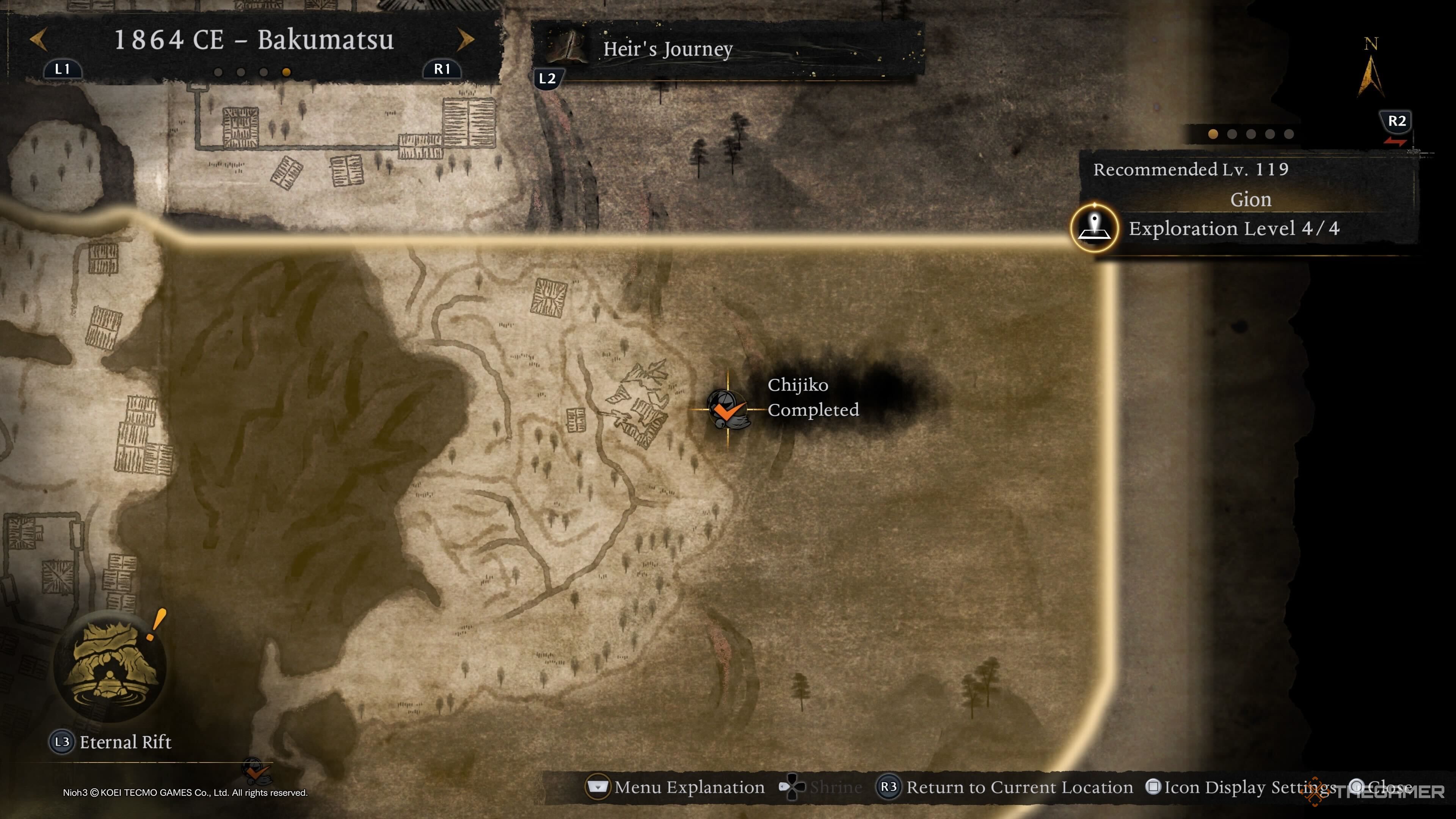 Финальный Чиджико из всей Nioh 3 находится недалеко от Императорской святыни, справа от Императорского дворца в Киото. Пройдите до самого запертого ворот недалеко от восточного края, а затем направьтесь вверх в небо. Чиджико находится далеко вдали, но до него можно добраться быстрым выстрелом. Если вы собрали все Чиджико по порядку, вы получите трофей «Орлиный глаз» за ваши труды! |