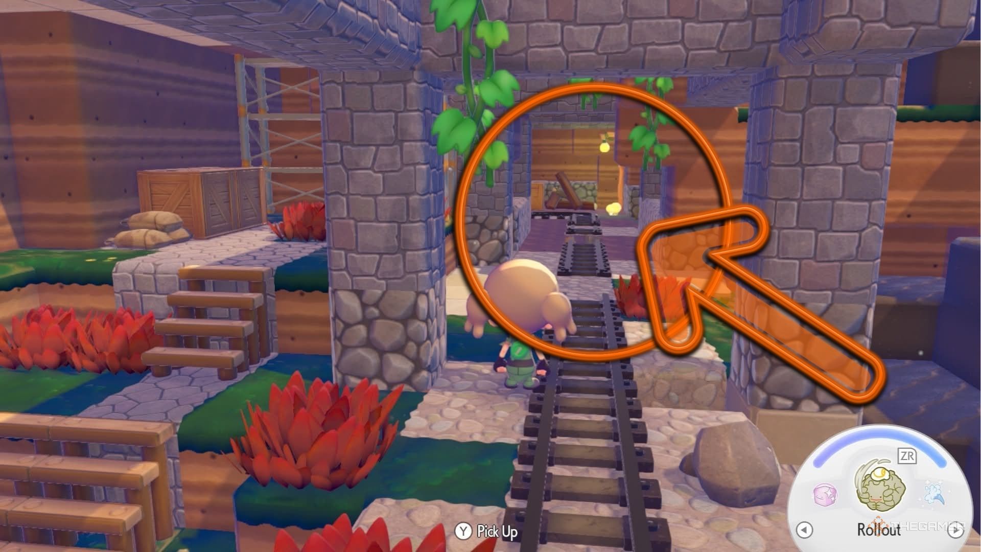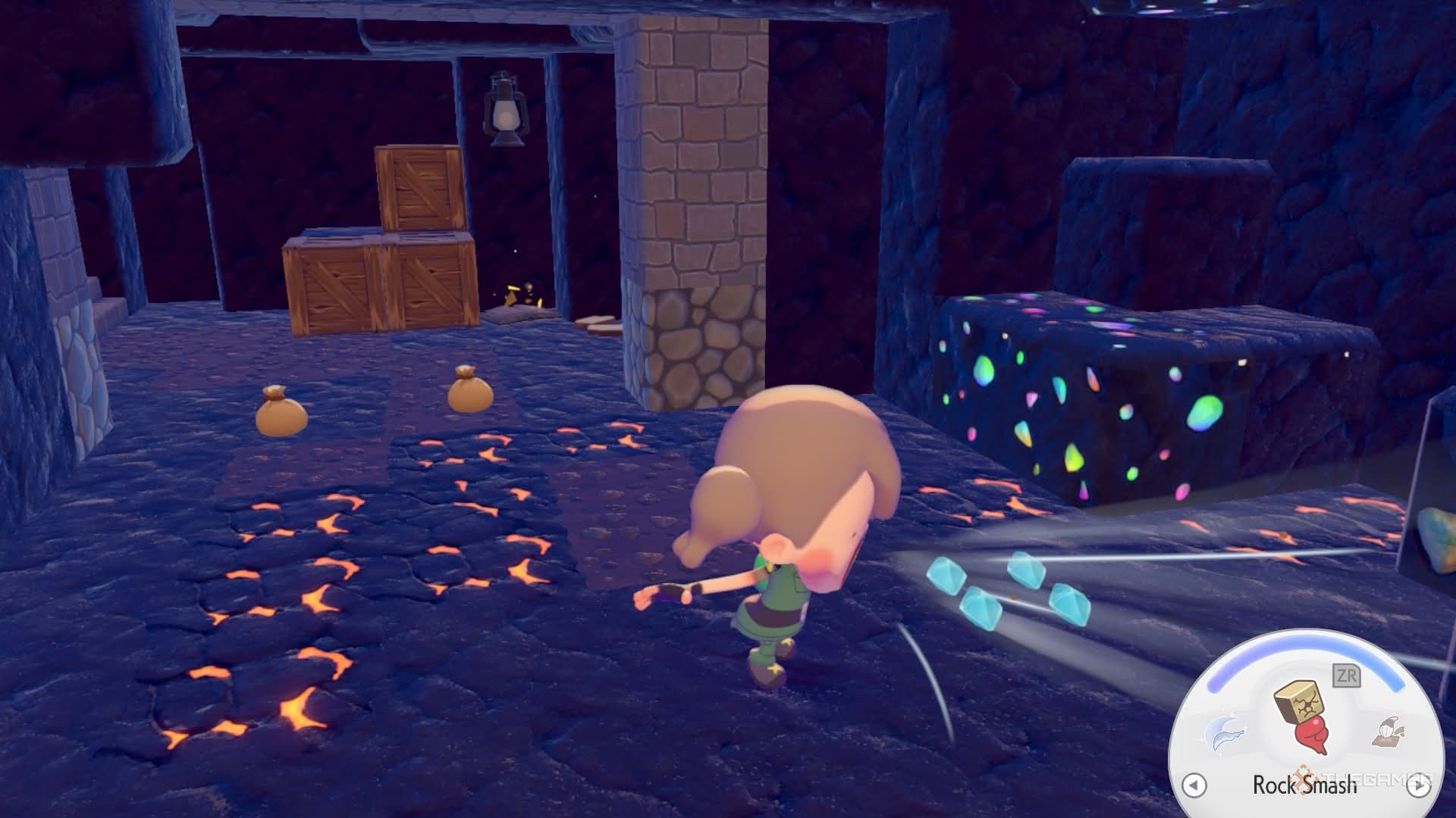 Путь вперед заблокирован несколькими валунами, поэтому вам нужно будет расчистить их, чтобы продолжить. Как только вы это сделаете, вы сможете добраться до Кристаллов, прорубив железные ворота.