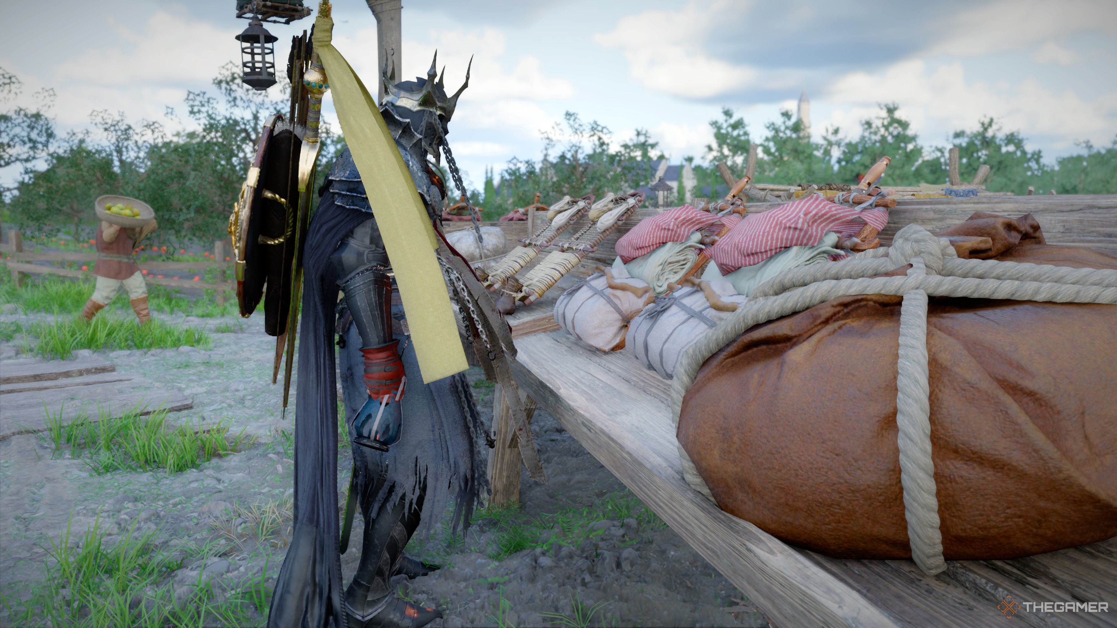 Вы можете приобрести только те два набора, которые выставлены прямо за торговцем. Еще два набора доступны на столе возле дубильни, а еще один набор — напротив них.