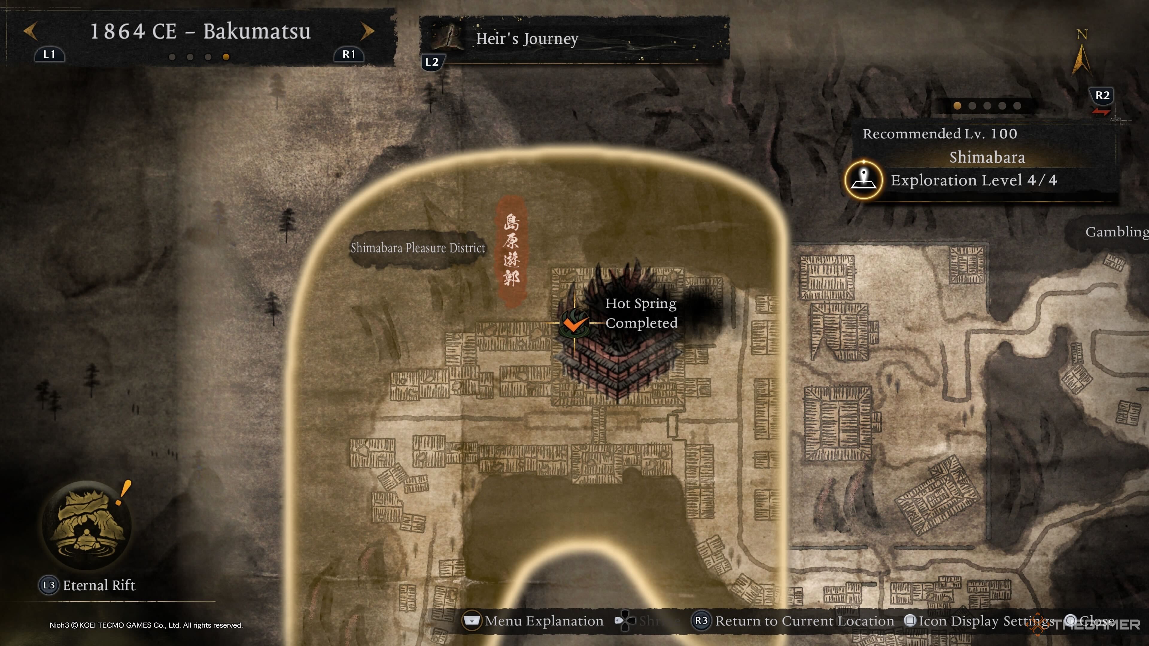 По сравнению с периодом Хэйан в Nioh 3, период Бакумацу отличается значительно большим количеством горячих источников для обнаружения. Как правило, эти источники сложнее найти и требуют больше усилий, чтобы добраться до них, чем те, что встречаются в других частях игры.