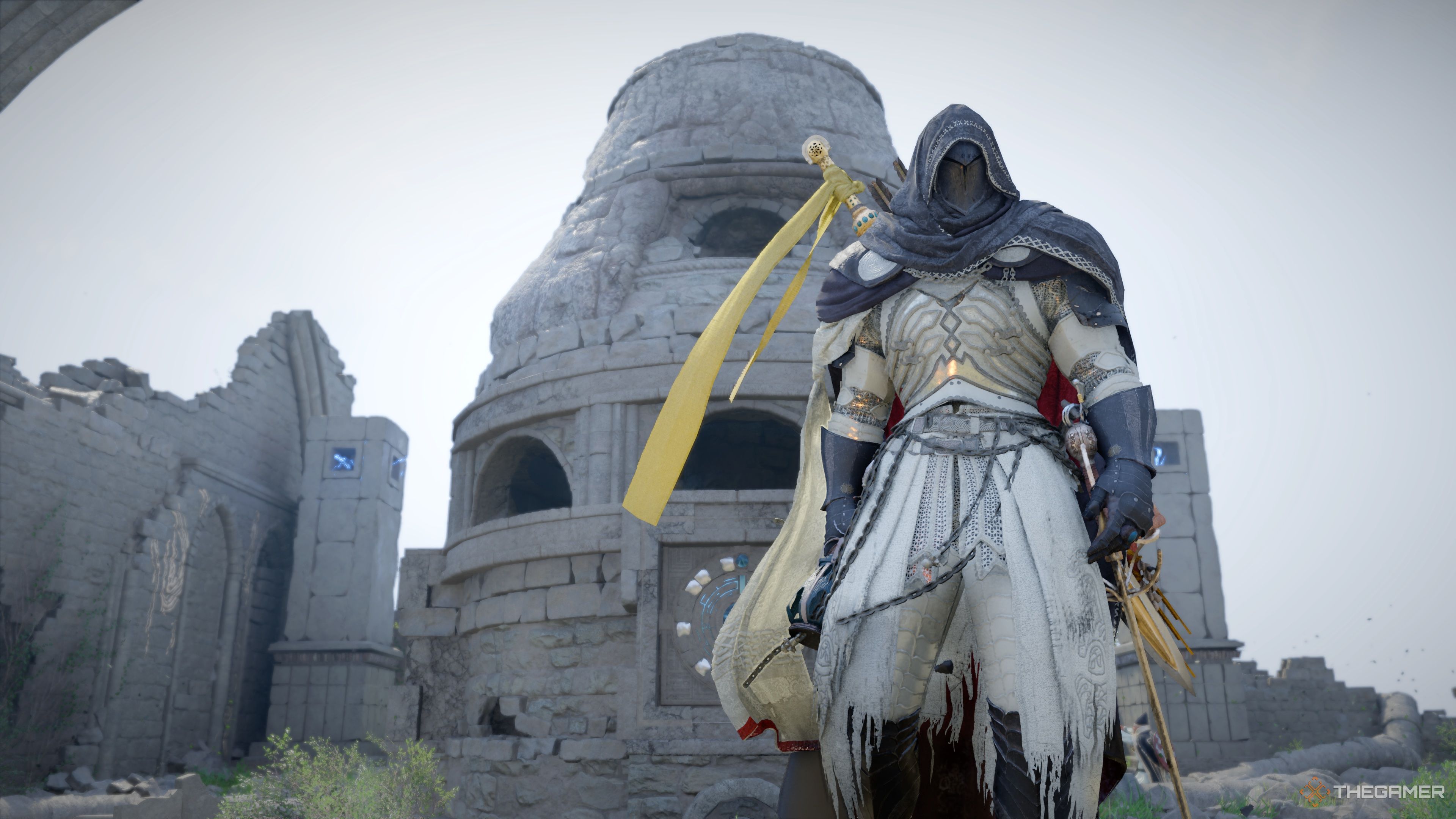 Теперь вам нужно найти фрагмент столба. Вы можете найти его, направившись на северную сторону руин и взобравшись по стенам, чтобы подняться на крышу здания.