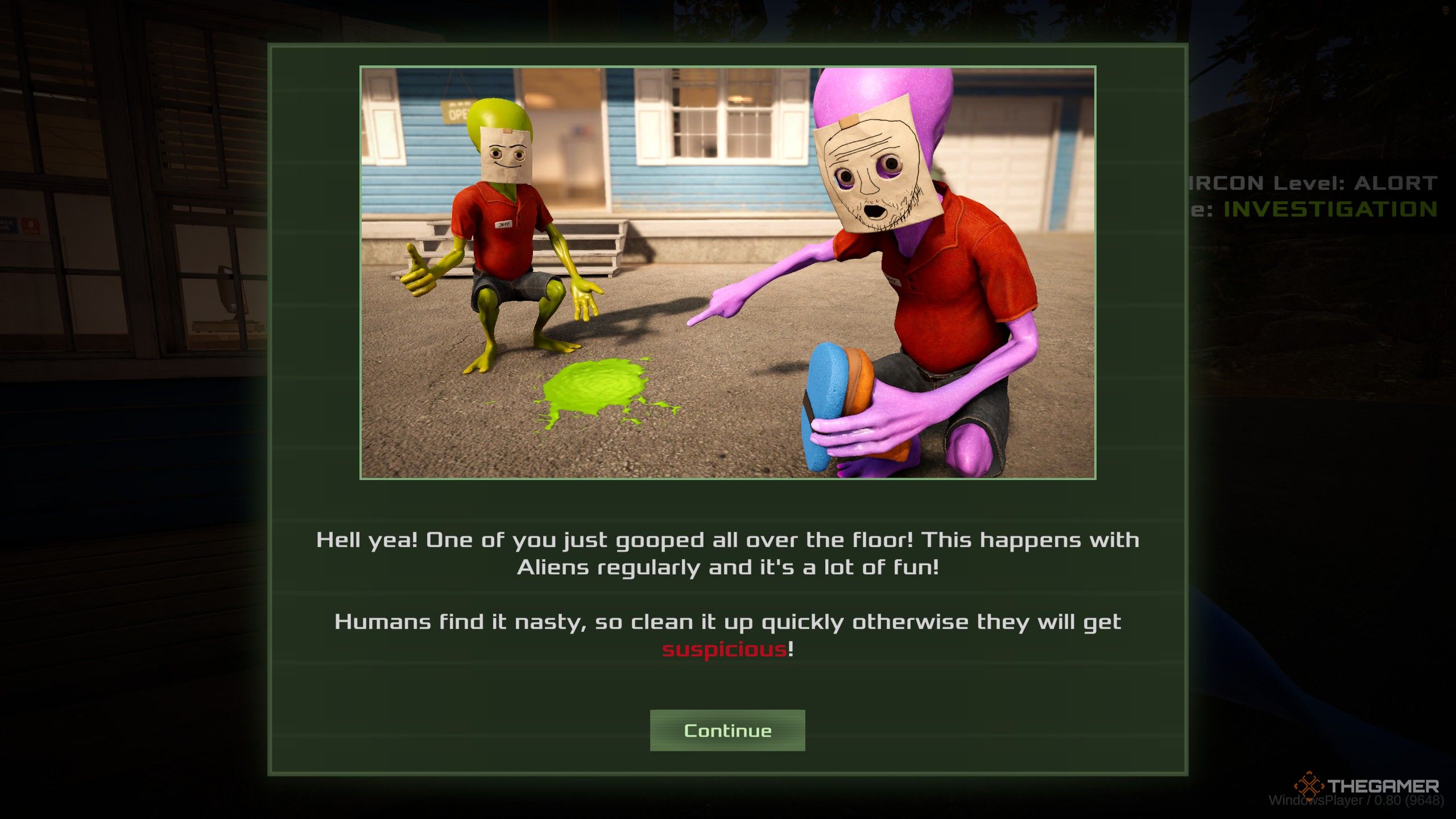 Эти существа определённо не люди, и люди начнут подозревать, если их увидят. Это означает, что любая слизь, которую они оставляют в скрытых местах – например, в инопланетной комнате или за магазином – не является большой проблемой, хотя агенты всё равно будут её проверять, если посетят это место. Лучше убрать слизь для безопасности.