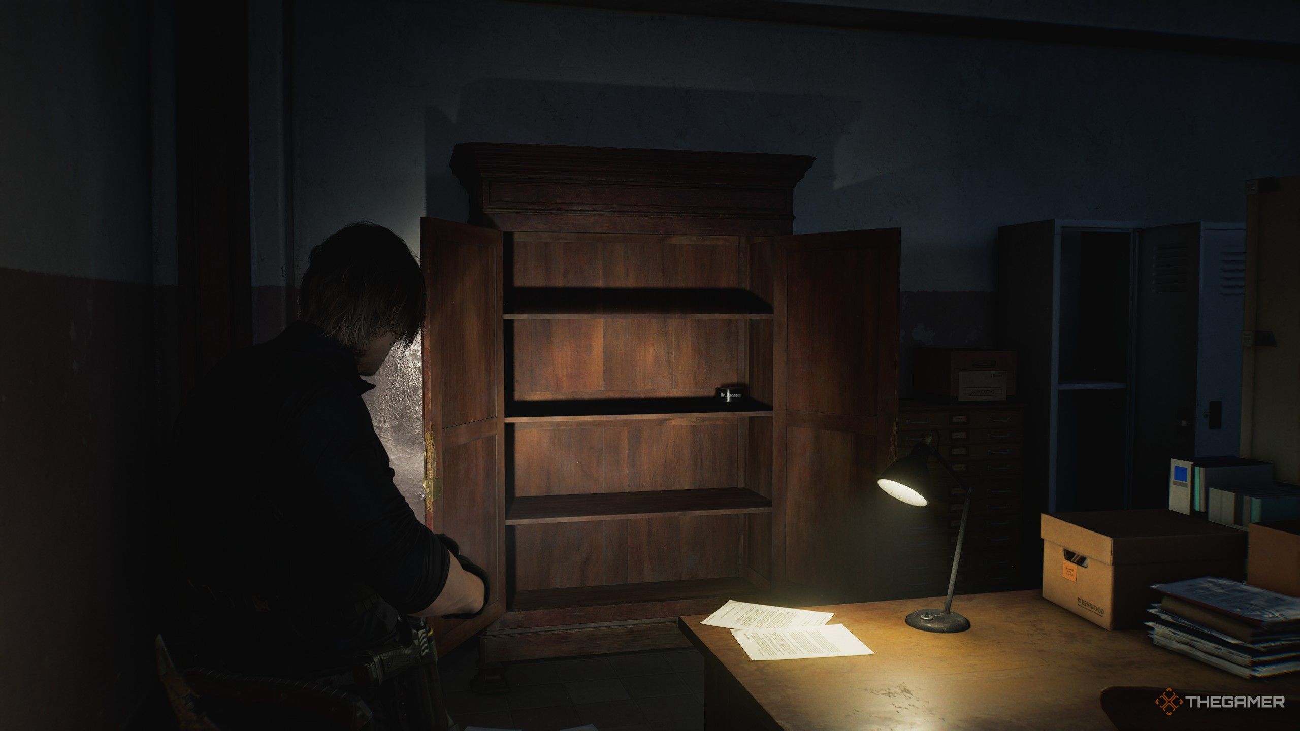 Если вы играете за Леона, избегайте немедленного входа в кабинет Виктора. Оказавшись внутри, вы не сможете выйти и полностью исследовать местность. Обязательно проверьте все Искаженные Шкафы, прежде чем войти в кабинет Виктора, иначе вы навсегда лишитесь некоторых предметов!