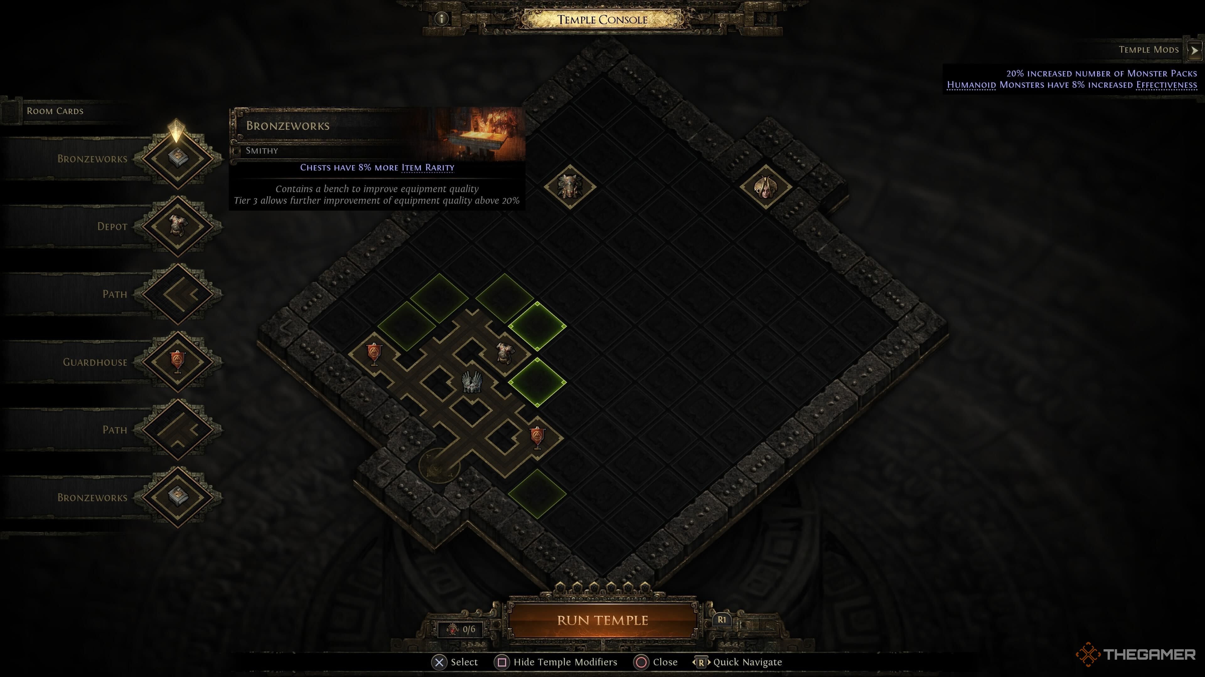 Когда вы закончите проектирование своего подземелья, используя Ruined Temple в Path of Exile 2, нажмите кнопку «Run Temple» внизу экрана. Это откроет вход в ваше творение. Хорошая идея — проверить свой тайник и экипировать лучшие предметы перед входом, но помните о необходимости часто посещать его, чтобы хранить ценные награды, которые вы найдете в Ruined Temple.