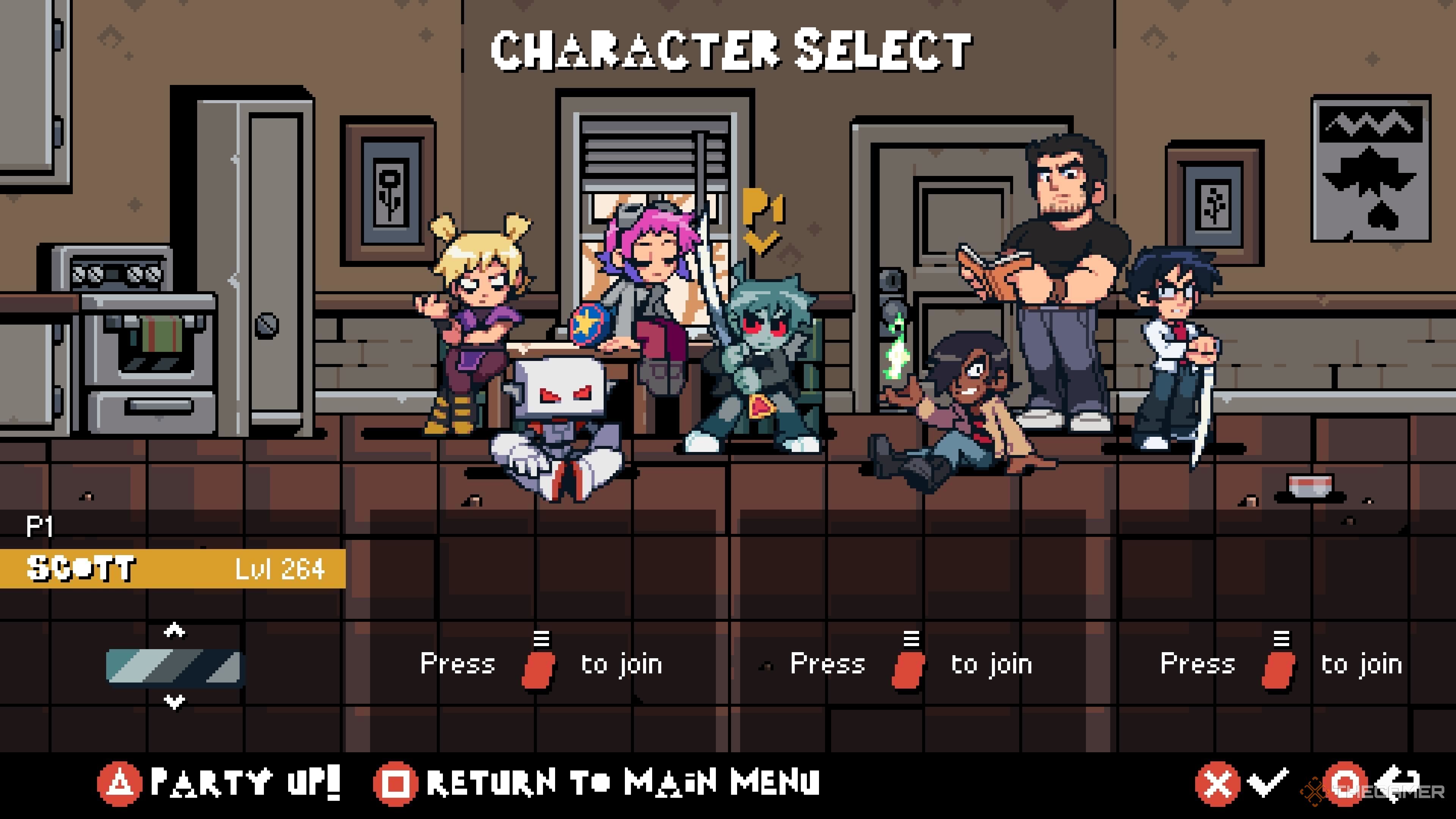 Теперь, когда вы собрали все цветовые палитры в Scott Pilgrim EX, вам нужно научиться их менять. К счастью, это так же, как смена персонажей! Перейдите в дом Скотта и Рамоны в Suburbs, выберите своего персонажа, и вы сможете легко переключаться между всеми доступными цветовыми схемами.