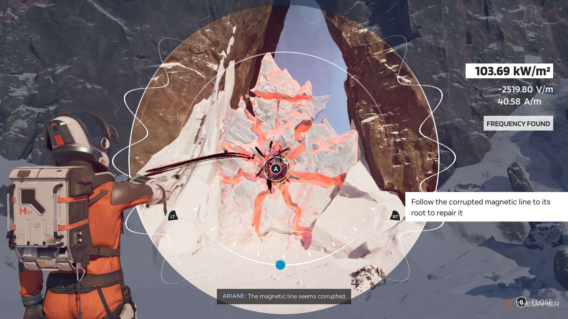 | The Right Frequency | Взаимодействуйте с Аномалией | Аномалия — это магнитное возмущение, которое вы можете изменить, используя ваш EM-сканер. Найдите её с помощью сканера и найдите правильную частоту, чтобы иметь возможность манипулировать ею. Обычно они раскрывают точки захвата, пути или устраняют препятствия. |