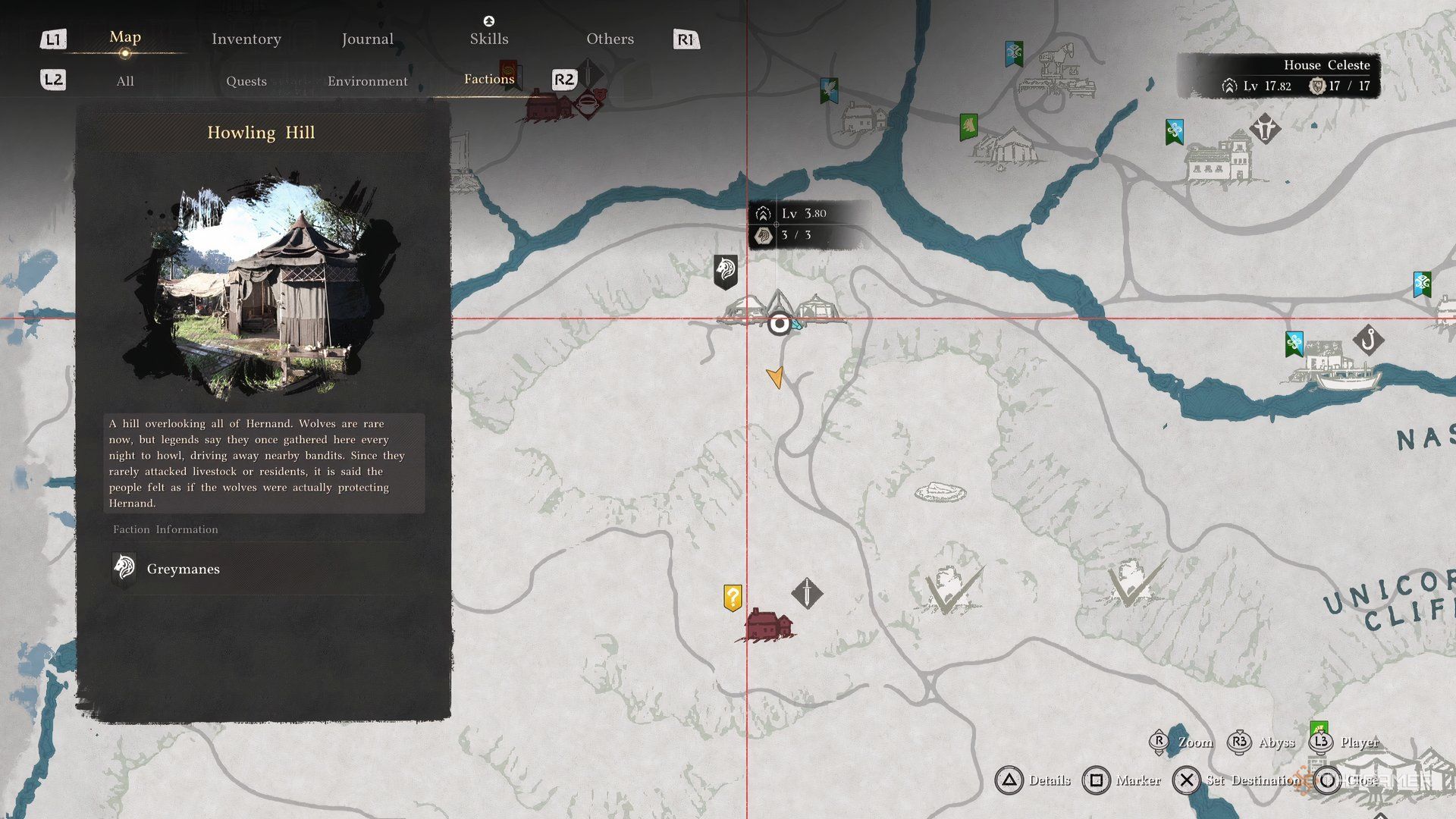 Команда ‘Details’ работает только тогда, когда ваш курсор находится непосредственно над лагерем на карте. Вы увидите небольшой эффект поднятия на иконке Howling Hill, если она зарегистрирована правильно. Если вы не видите эффект, попробуйте немного переместить курсор и нажать на команду ещё раз.