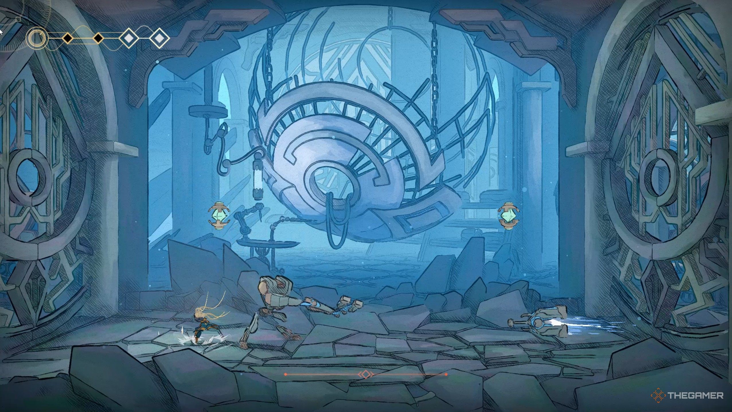 После вашего первоначального успеха в MIO: Memories In Orbit, игра продолжает бросать вам вызов захватывающими сражениями. Сражение с боссом Акат, в частности, проверяет ваше мастерство владения навыками передвижения и сложными окружениями, которые вы изучили на протяжении всей игры, требуя внимательной и обдуманной игры.