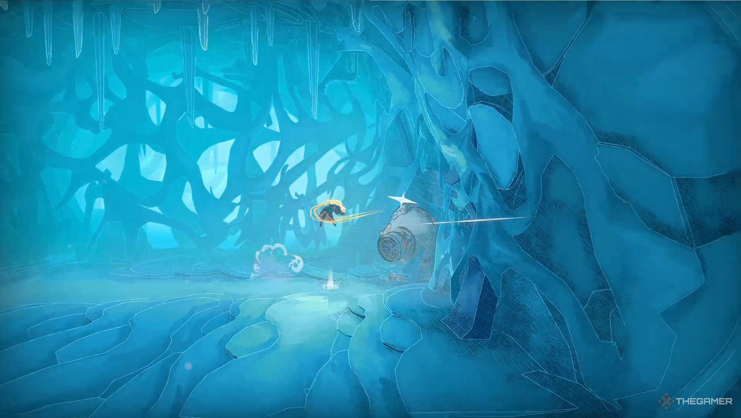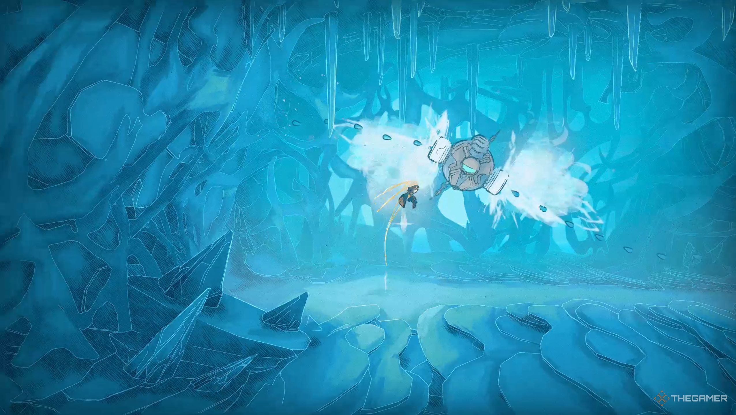 Atmos — быстрый и опасный босс, который неустанно преследует вас, одновременно выпуская непрерывный поток снарядов. Эта битва проверяет вашу способность следить за его движениями и учитывать всё происходящее на экране, особенно падающие сосульки, которые могут быстро наказать игроков, слишком сосредоточенных на боссе.