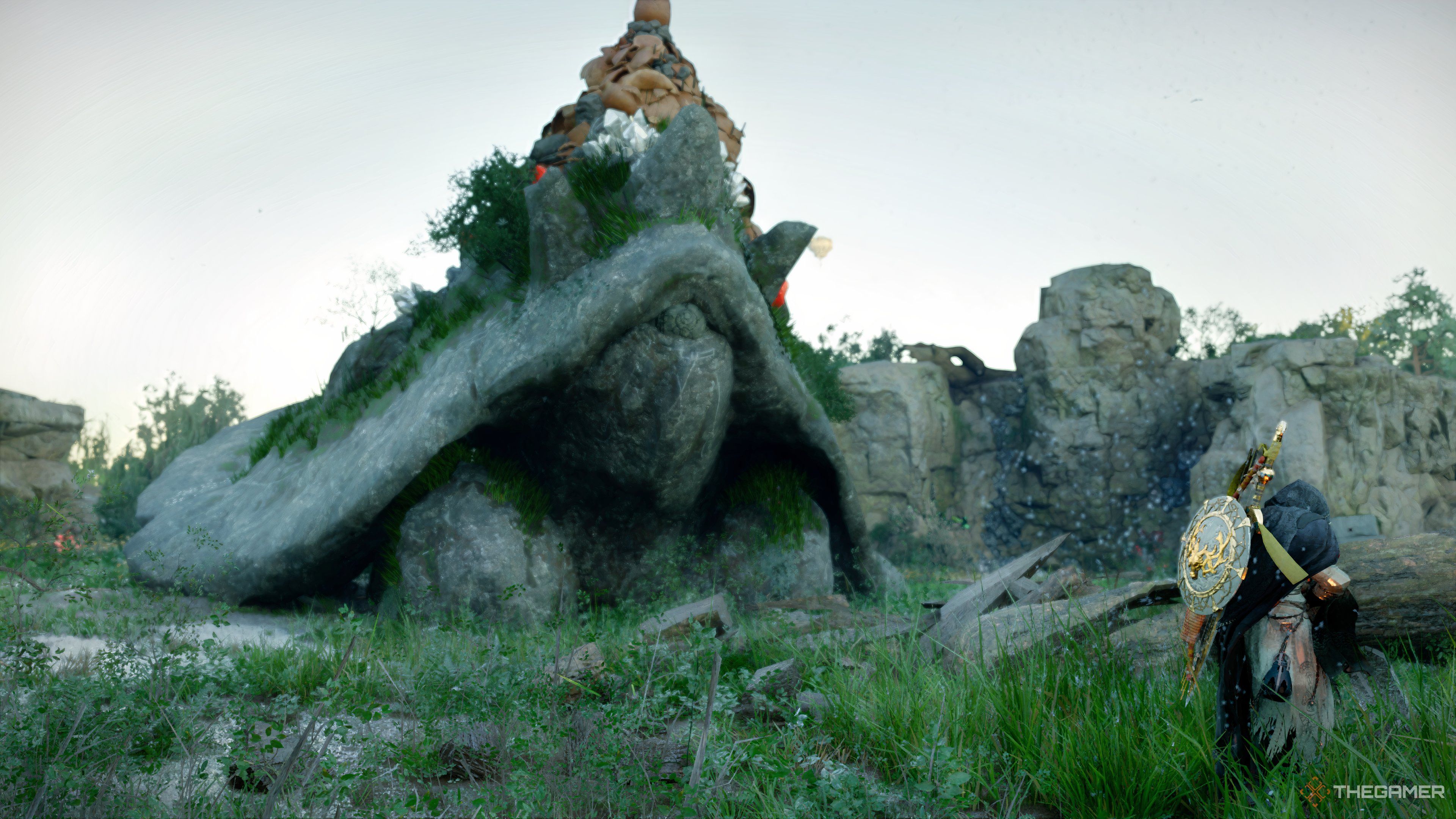 Двигайтесь к маркеру на вашем экране, чтобы достичь середины озера. По прибытии воспроизведется кат-сцена, представляющая вам босса Королеву Каменноспинного Краба.