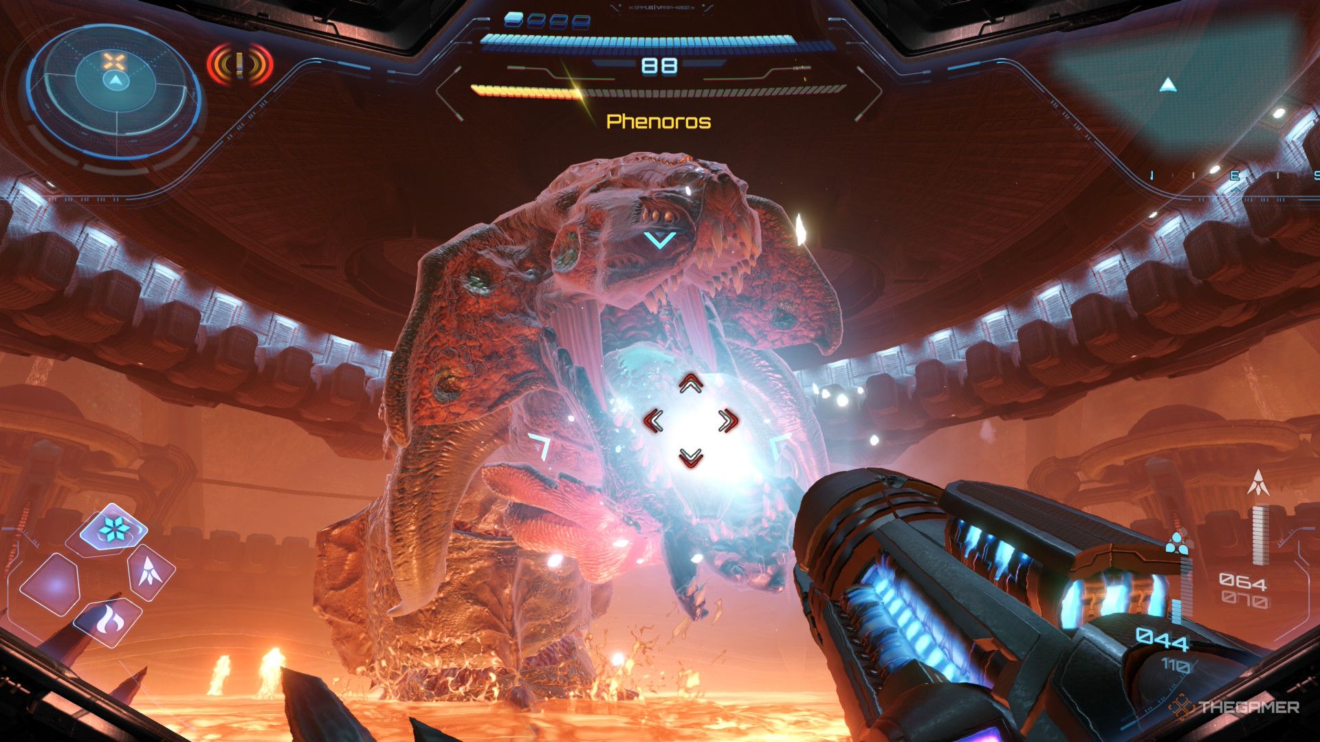 Чтобы избежать Огненного Луча, переключитесь в режим Морф-Бола и позвольте лучу пройти над вами. После того, как Фенорос пройдет половину пути в бою, он повторит атаку лучом. Просто оставайтесь в режиме Морф-Бола во время этой второй фазы, чтобы оставаться в безопасности.