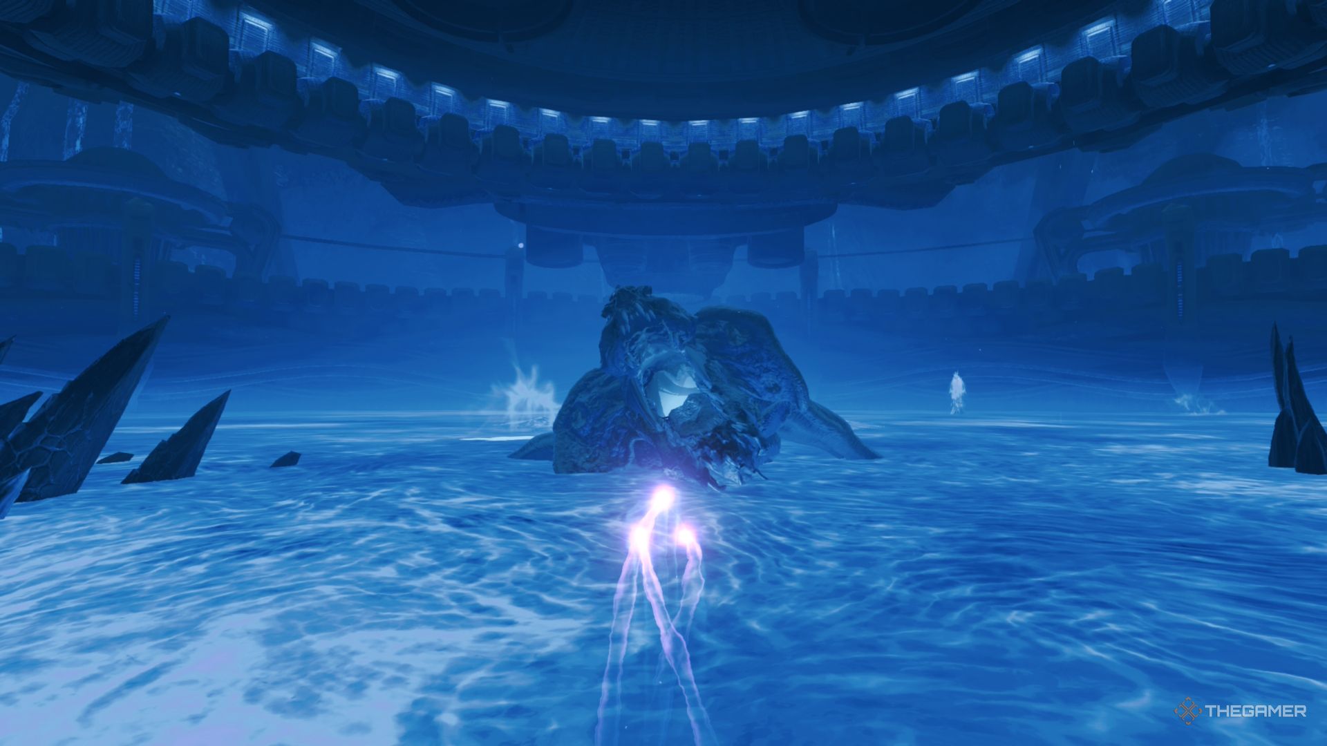 Представьте себе эти светящиеся пятна как жизнь Фенороса. Вам нужно уничтожить их все, чтобы перейти к следующему этапу битвы!