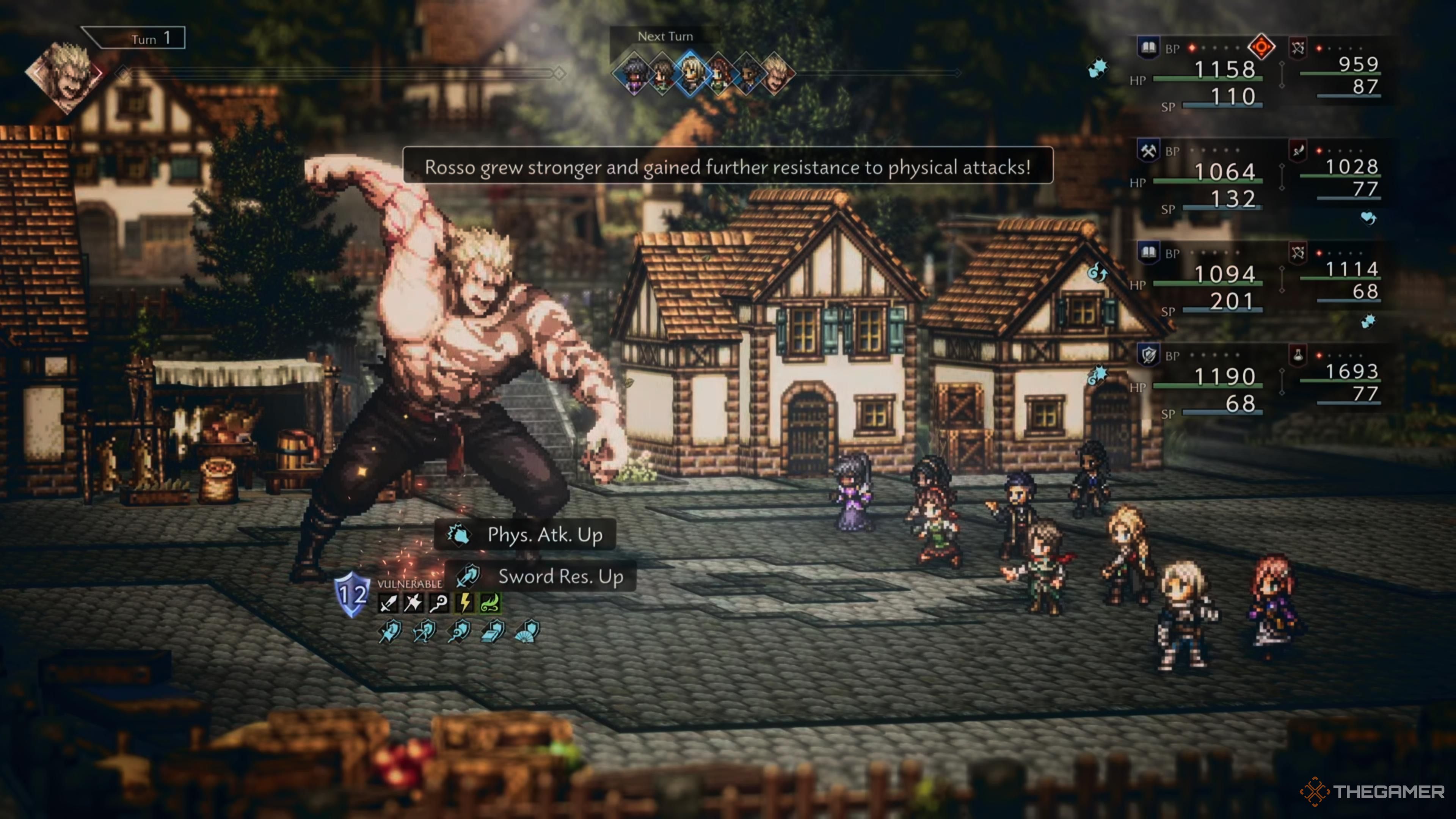 Окей, так что самая большая проблема с Россо – определенно преодоление его усиленной защиты. Пока вы не сможете пробить её, практически все ваши обычные физические атаки будут наносить только один пункт урона – он просто становится намного более устойчивым к ним! Потребуется некоторая стратегия, чтобы справиться с этим.