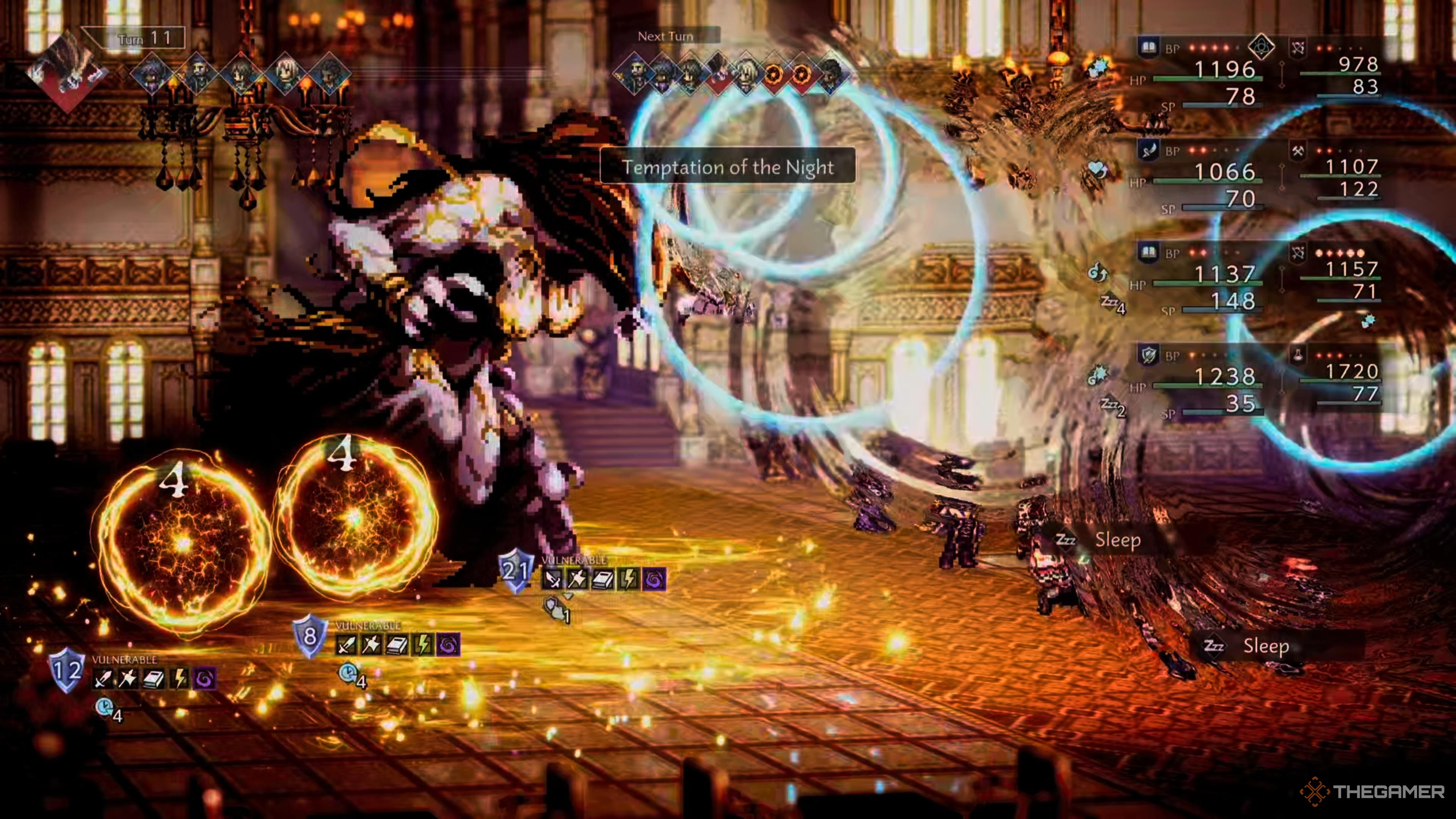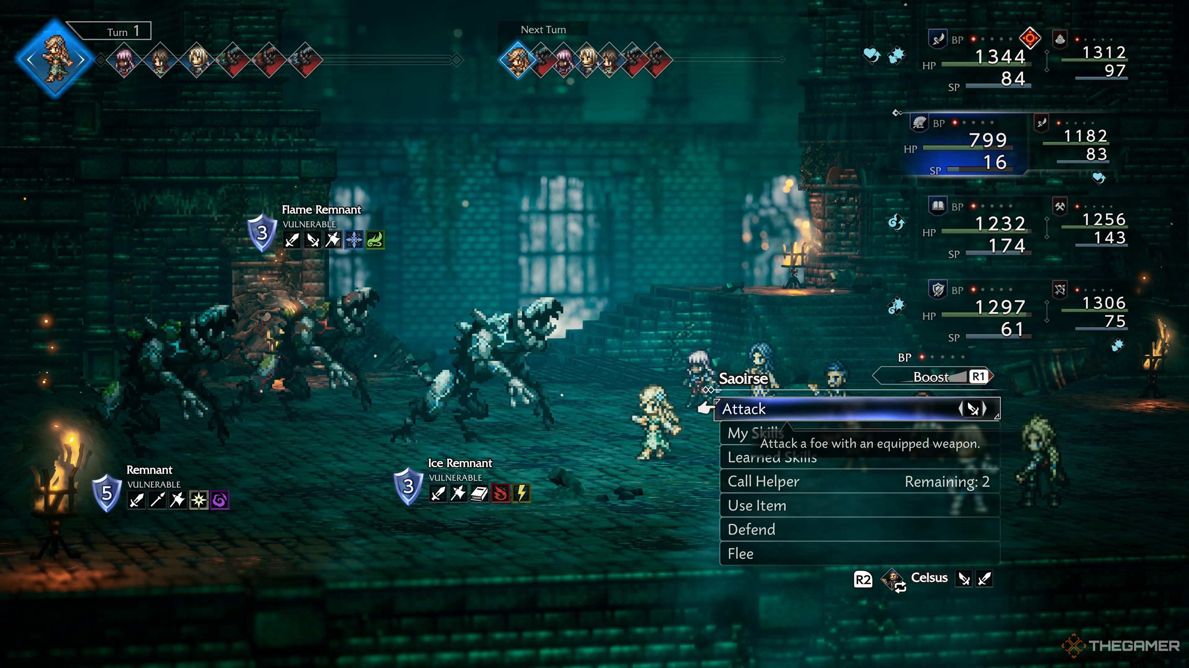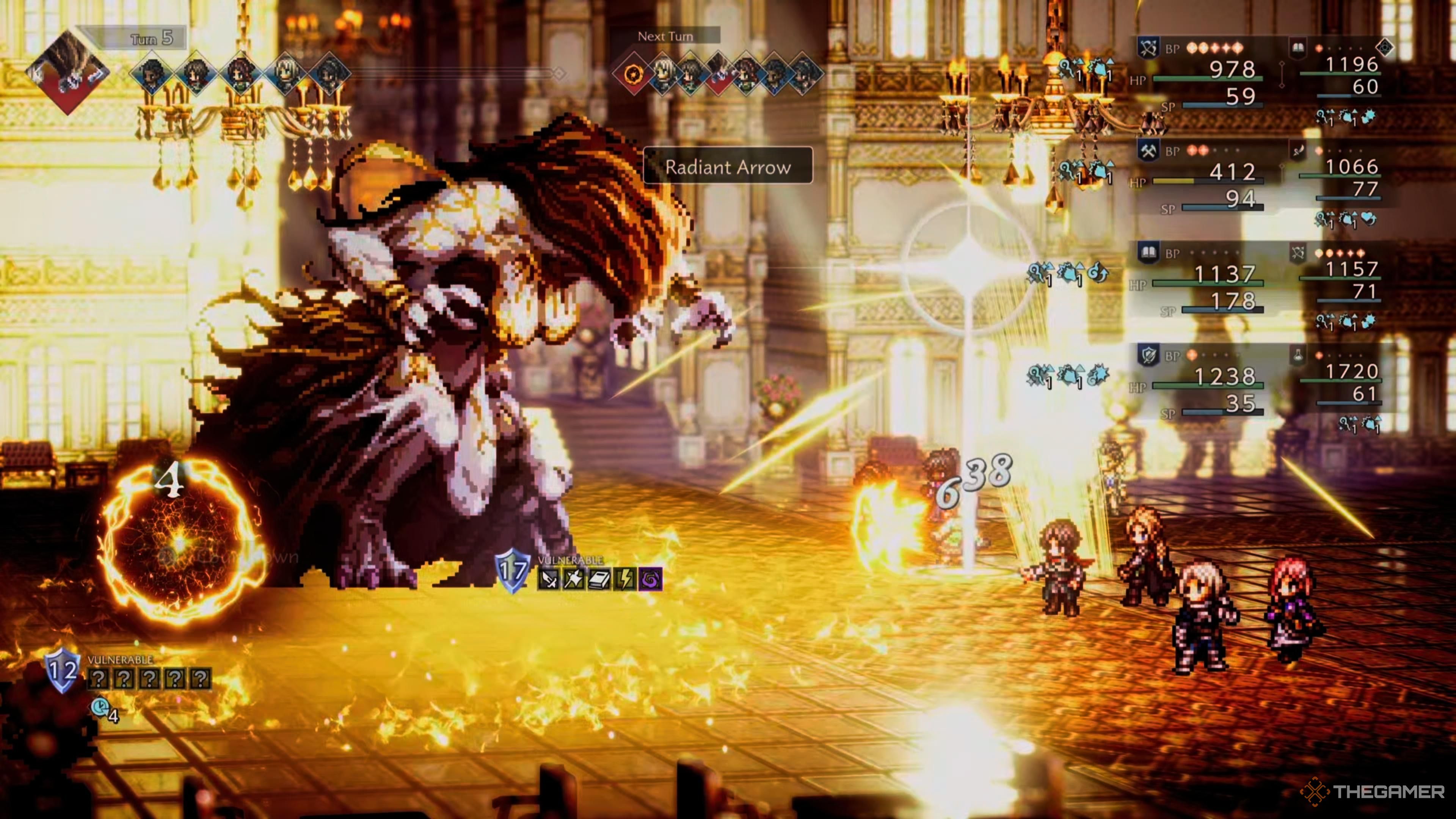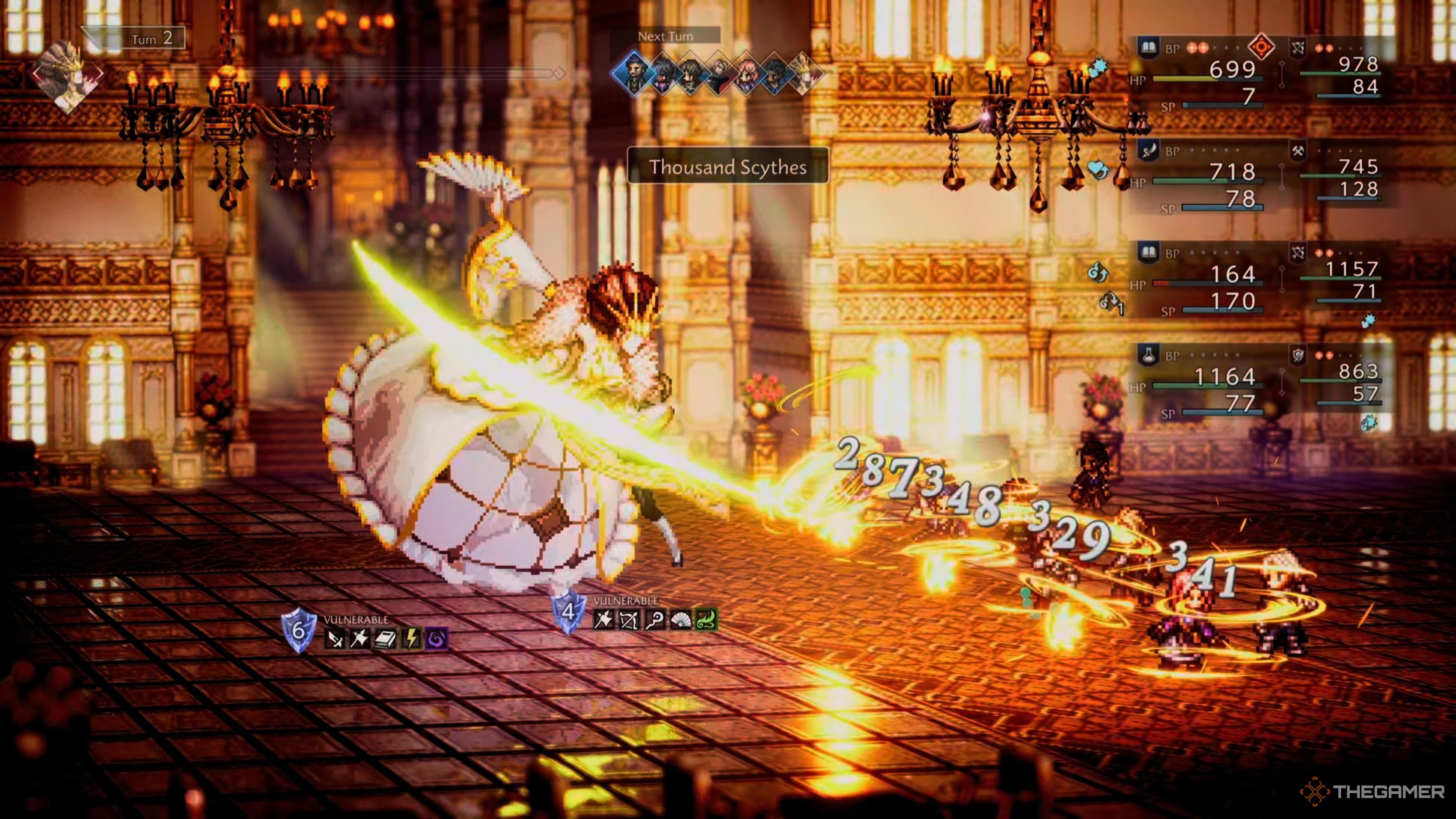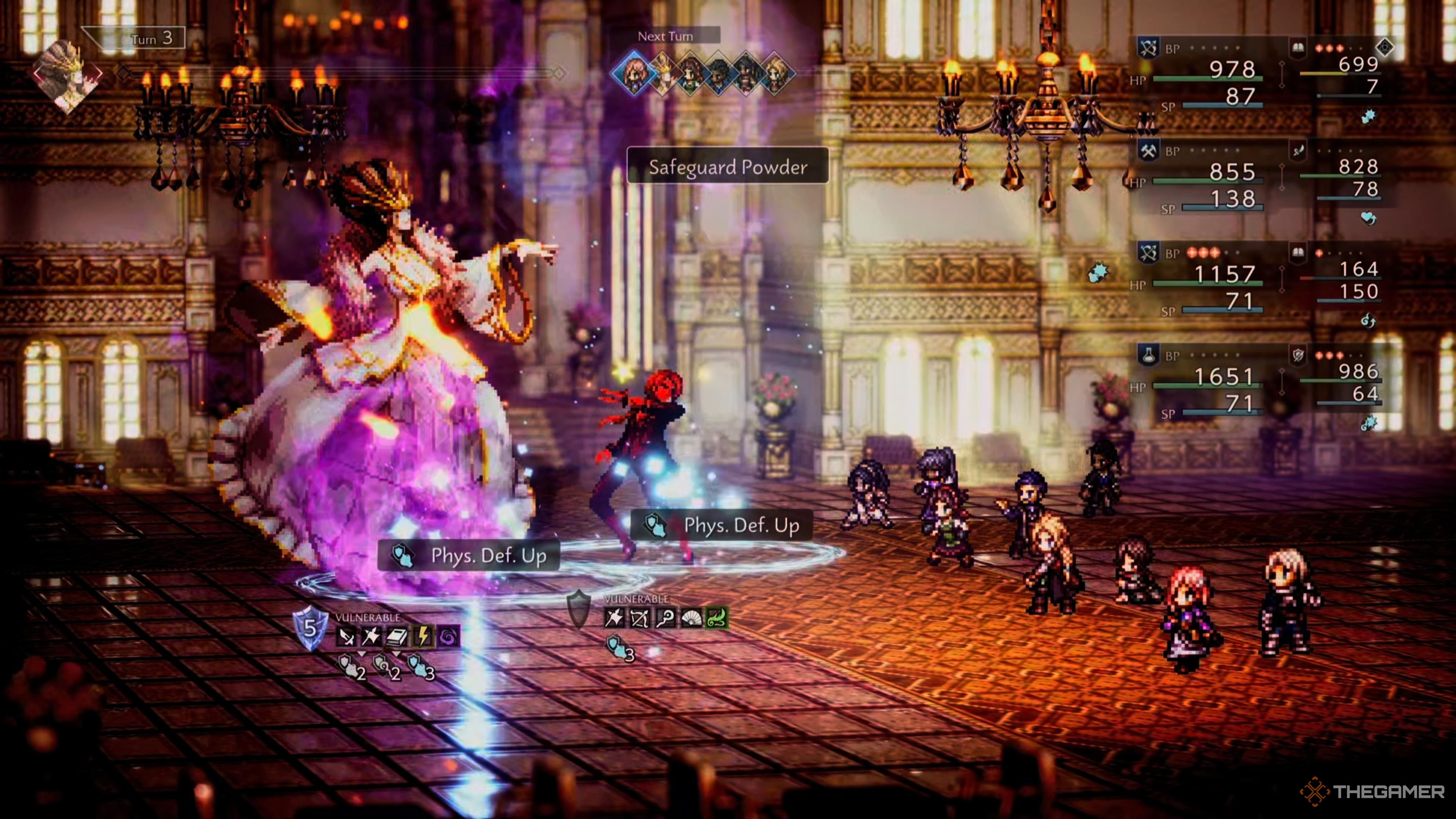 Окей, так, в основном, просто продолжайте бить по уязвимому месту. И серьёзно, не тратьте свои Break Points на врагов в задних рядах – это того не стоит. Вместо этого измените расстановку, чтобы ваши более сильные персонажи были впереди, особенно те, которым не нужна SP для выполнения их задач. Таким образом, они смогут принимать удары!