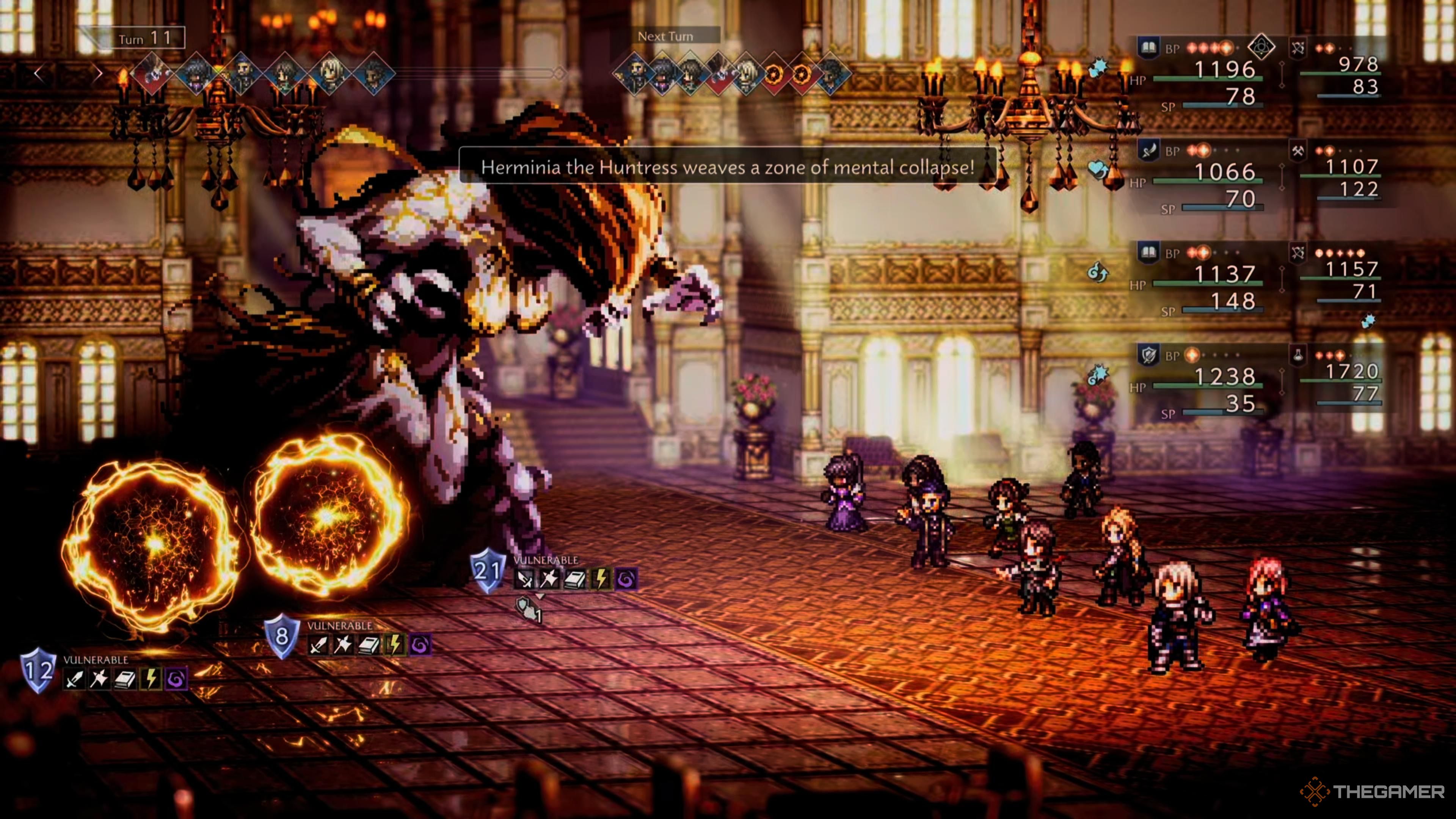 Если вы столкнетесь с несколькими случаями Mental Decay, крайне важно быстро их победить. В противном случае вы не выдержите их обоих, использующих Flame of Ruination, особенно с последующей атакой Herminia.