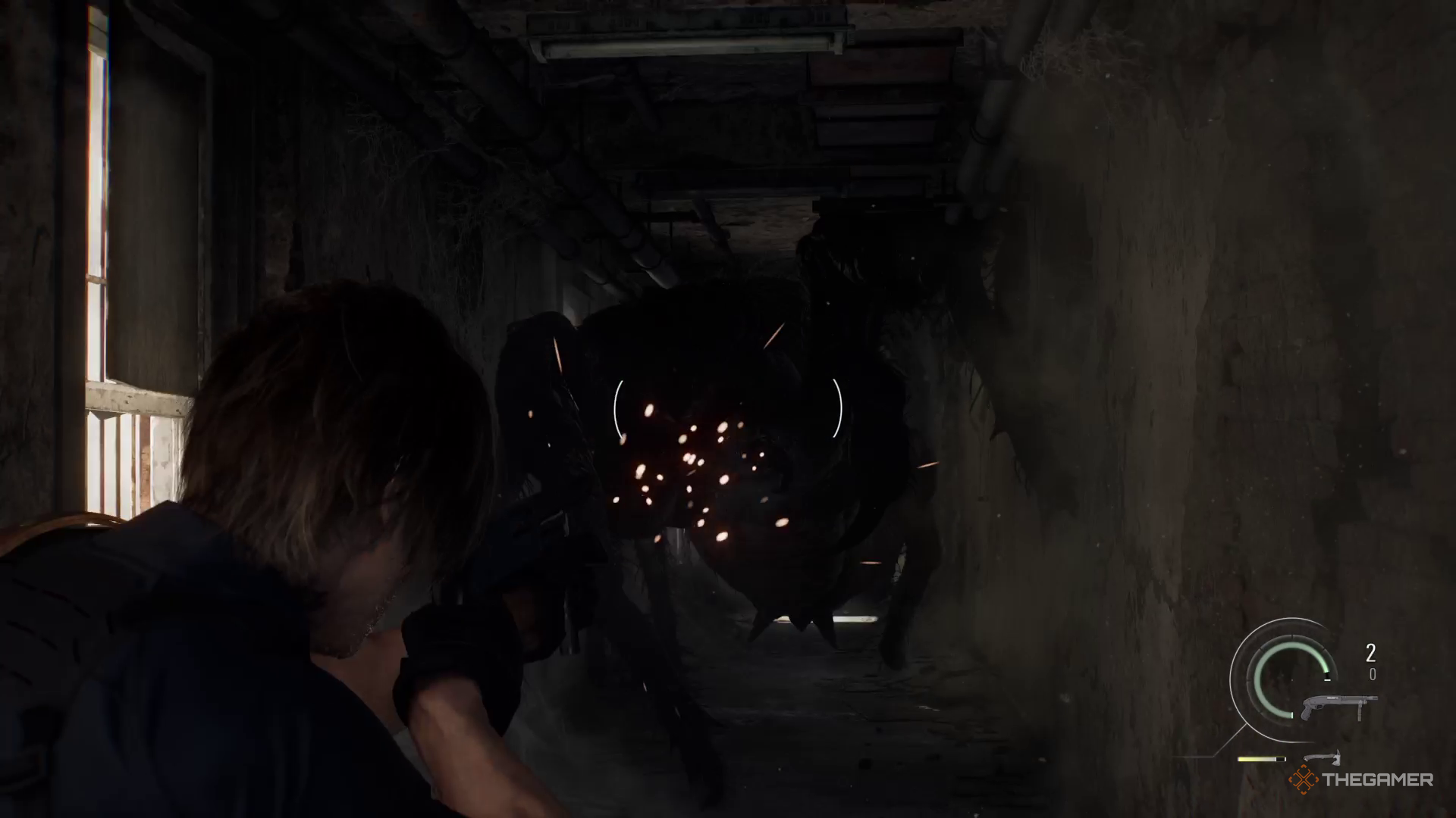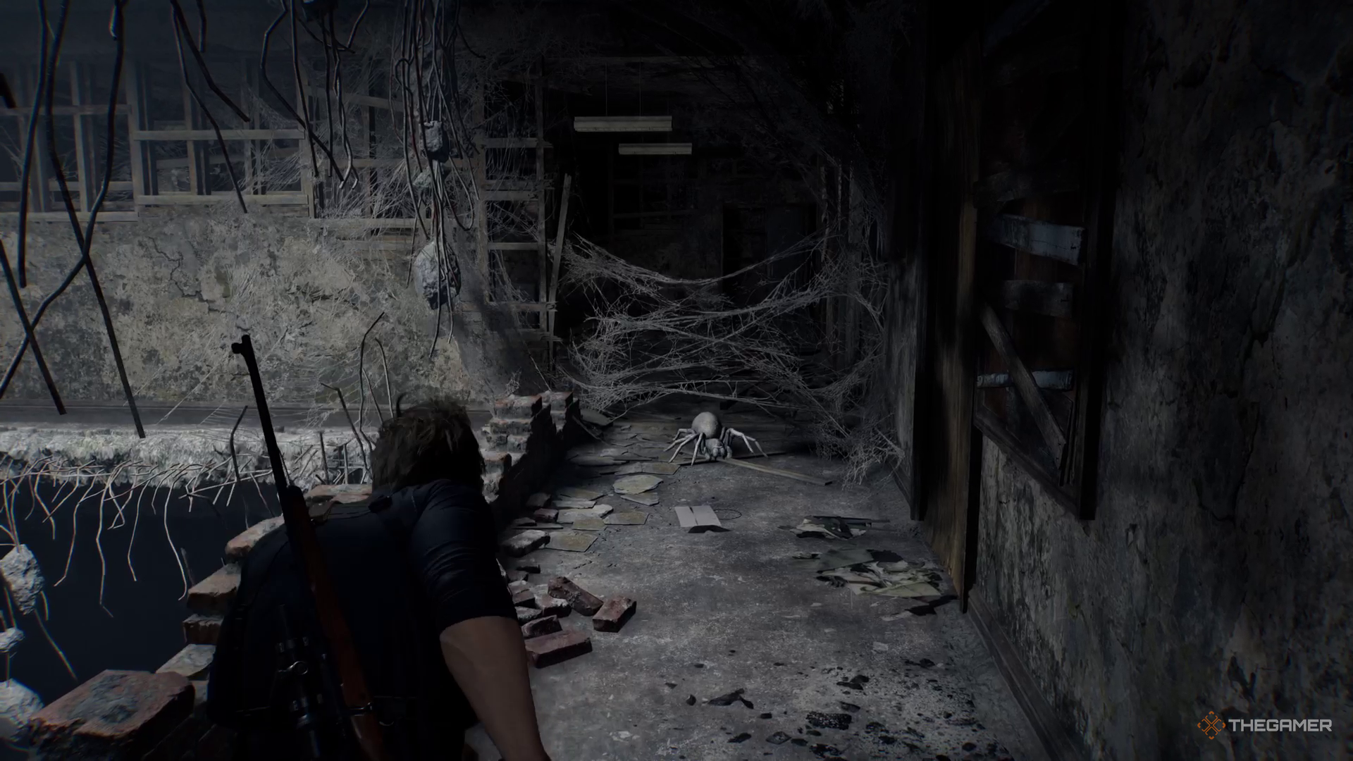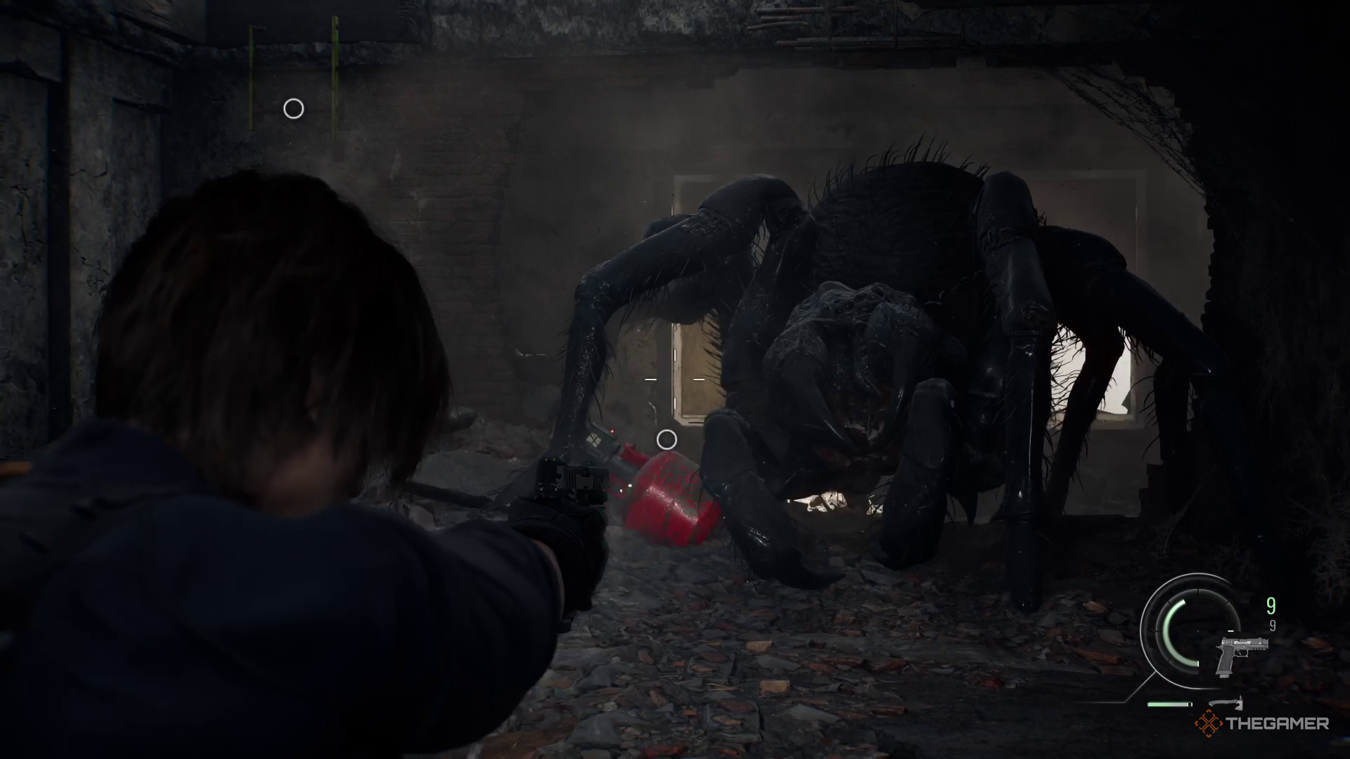 Как только вы доберетесь до верхних уровней, вы столкнетесь со множеством маленьких пауков, которые могут прицепиться к Леону и наносить незначительный урон. Их легко убить одним выстрелом, но граната или дробовик — быстрый способ уничтожить сразу несколько.