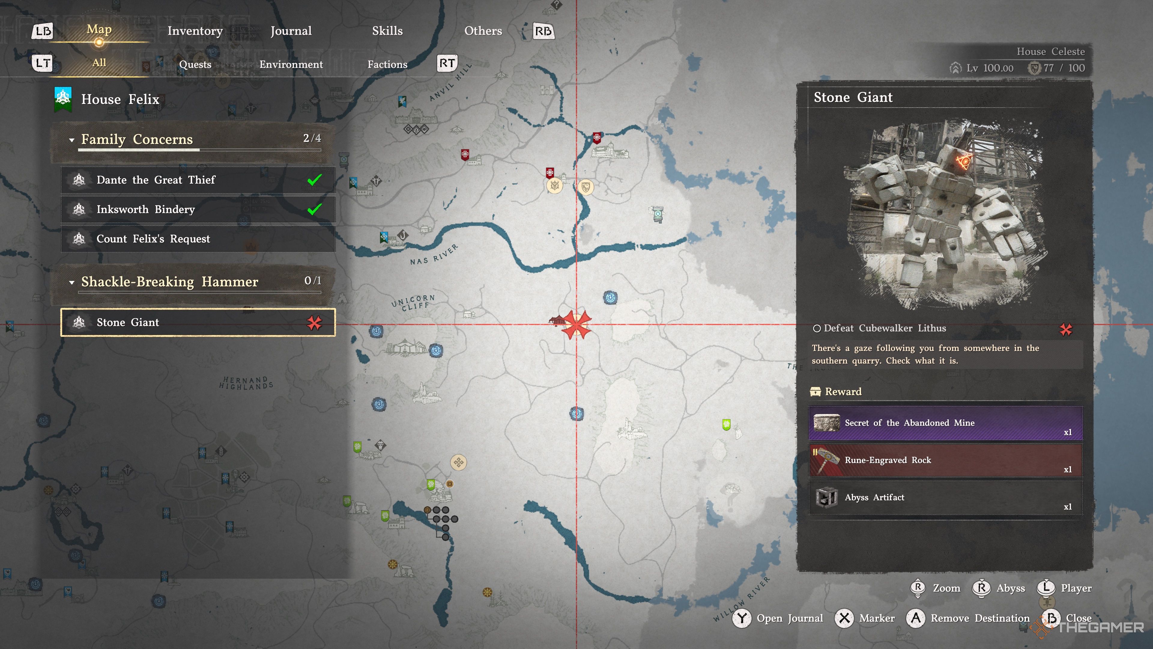 После того, как вы победите врага, получите Abyss Artifact и завершите зачистку Southern Quarry. Как только шахта будет полностью зачищена, вы освободите её и завершите квест Stone Giant, выполнив просьбу графа Феликса.