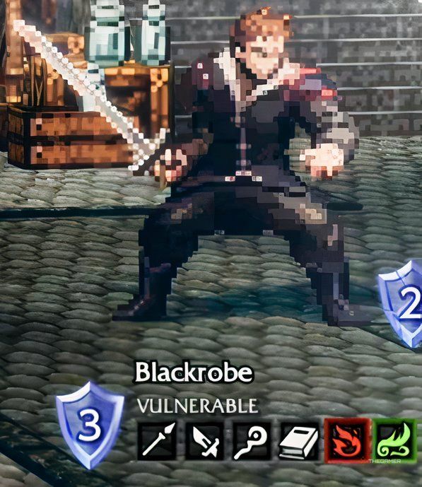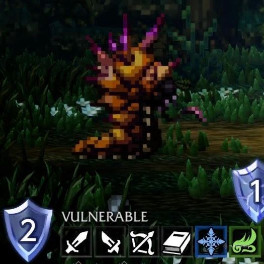 Чтобы победить этого врага, несколько персонажей обладают специальными способностями, чтобы сломать его защиту. Если у вас есть Phenn, его Лук и Повторяющийся выстрел могут уничтожить два щита одновременно без каких-либо усилений. Viator может сломать защиту своим древковым оружием, а Celsus – своим кинжалом. Даже когда она сосредоточена на исцелении, Stia также может использовать свой кинжал, чтобы помочь сломать щиты врага.