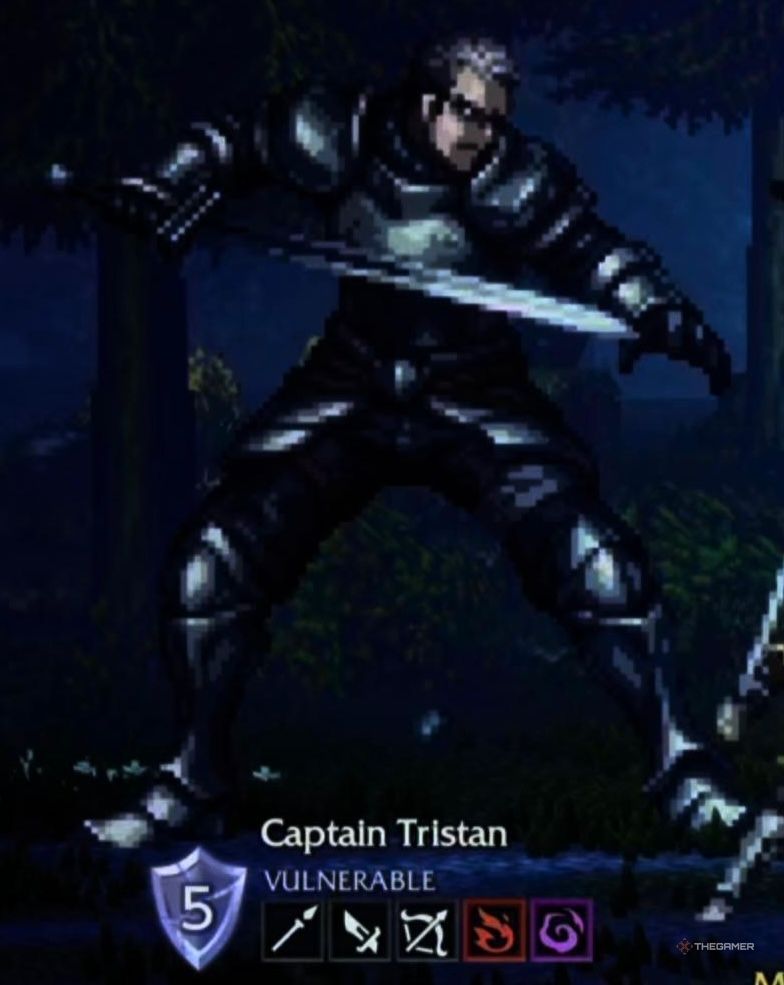 Чтобы победить капитана Тристана, наиболее эффективная тактика — использовать либо Цельса, либо Виатора, чтобы раздражать или бросать ему вызов. Если вы используете Виатора, заставьте его неоднократно провоцировать капитана Тристана, чтобы отвлечь его внимание, а затем воспользуйтесь способностью Виатора отражать атаки.