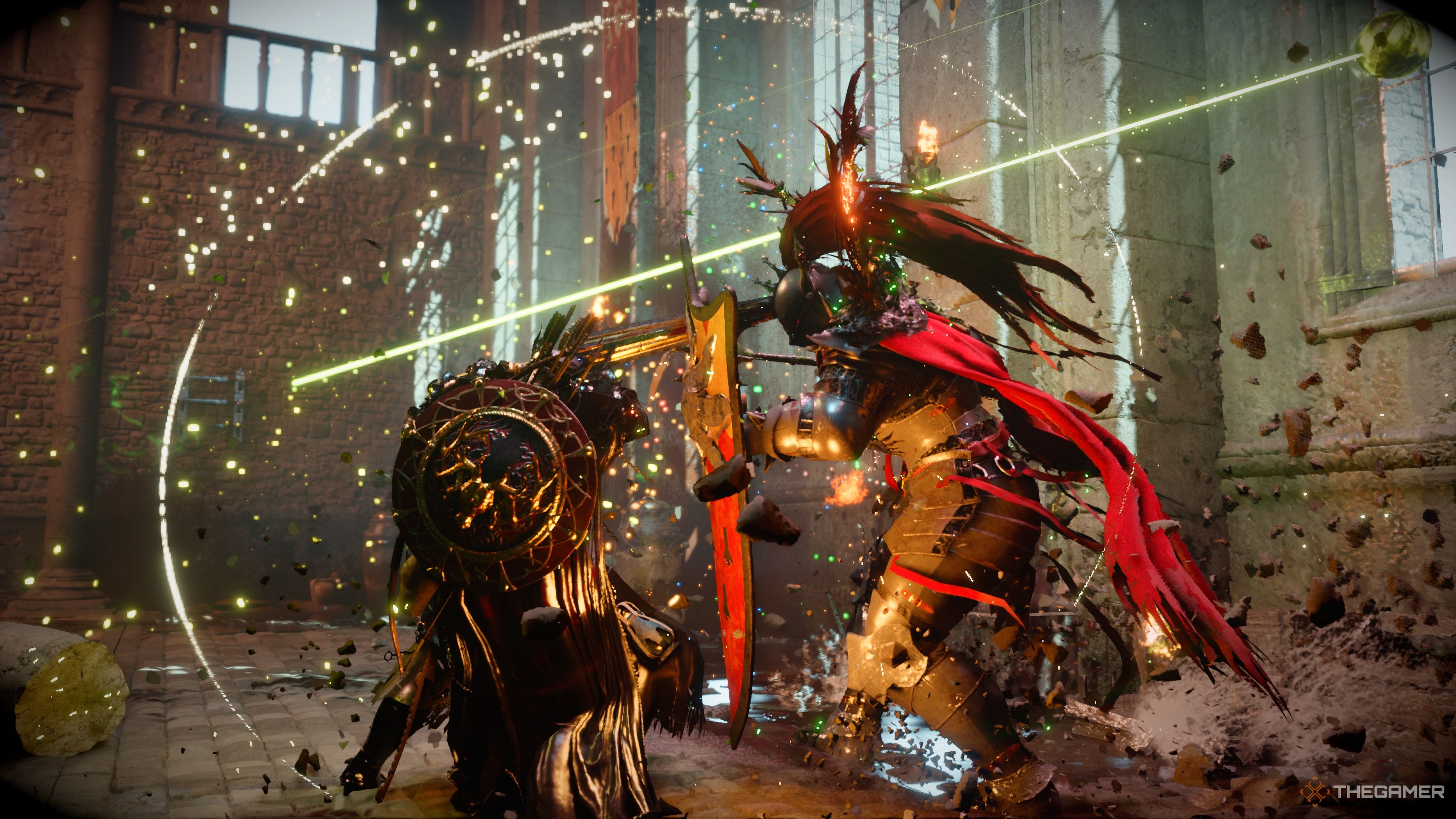 Для более продвинутой стратегии вы можете обманом заставить Кассия разрушить колонны, а затем использовать Прикосновение Природы, чтобы поднять эти сломанные части и нанести ему много урона, ударив его ими.