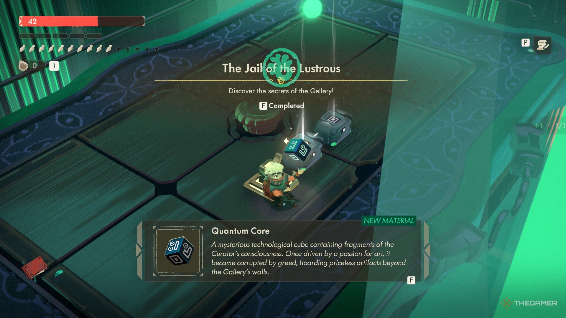 После победы над The Curator вы получите два сундука и новый предмет под названием Quantum Core. Вы можете использовать Quantum Core для создания оружия Blo-Beam. Кроме того, завершение битвы завершает побочное задание, The Jail of the Lustrous, и Babyl даст вам рецепт The Rectifier.