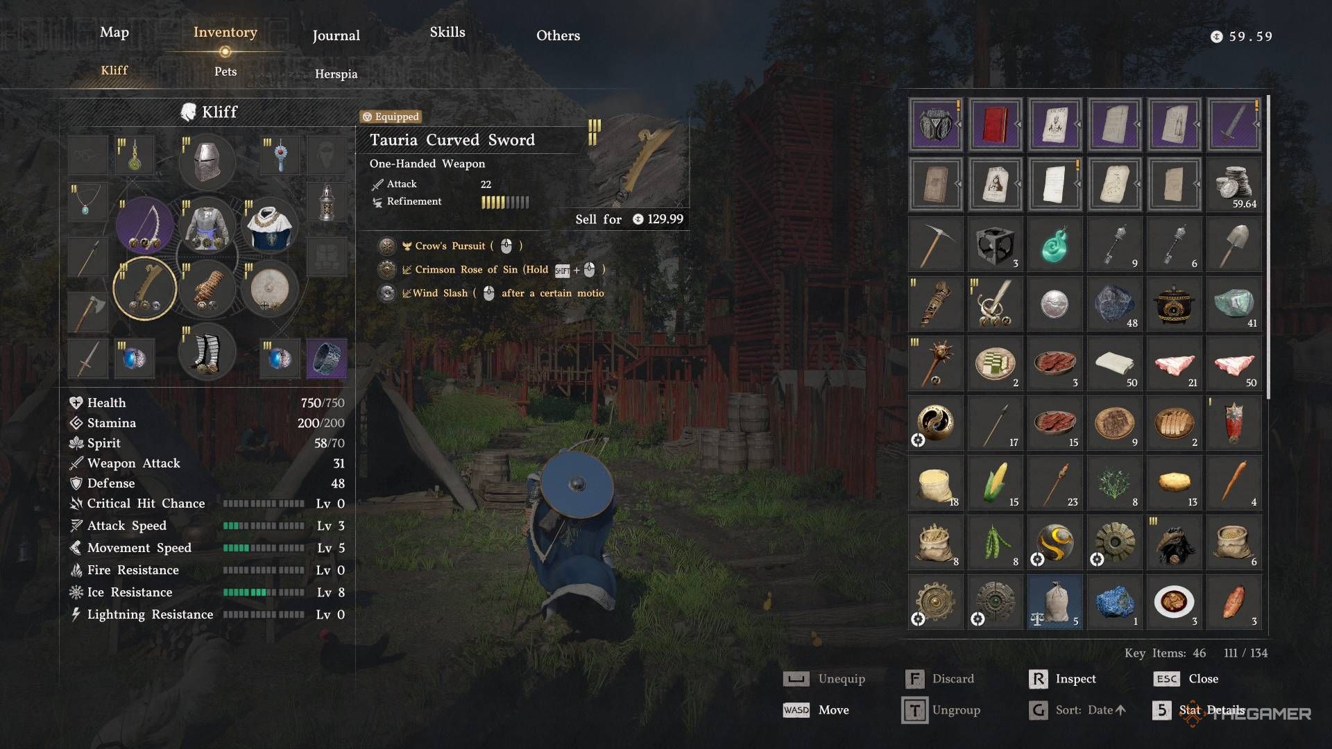 Я экипировал свой меч тремя мощными ядрами: Crow’s Pursuit, Crimson Rose of Sin и Wind Slash. Я настоятельно рекомендую добавлять ядра к вашей экипировке, когда у вас есть лишний серебряный. Вы можете посетить Ведьму, чтобы открыть больше слотов для ядер на ваших предметах.