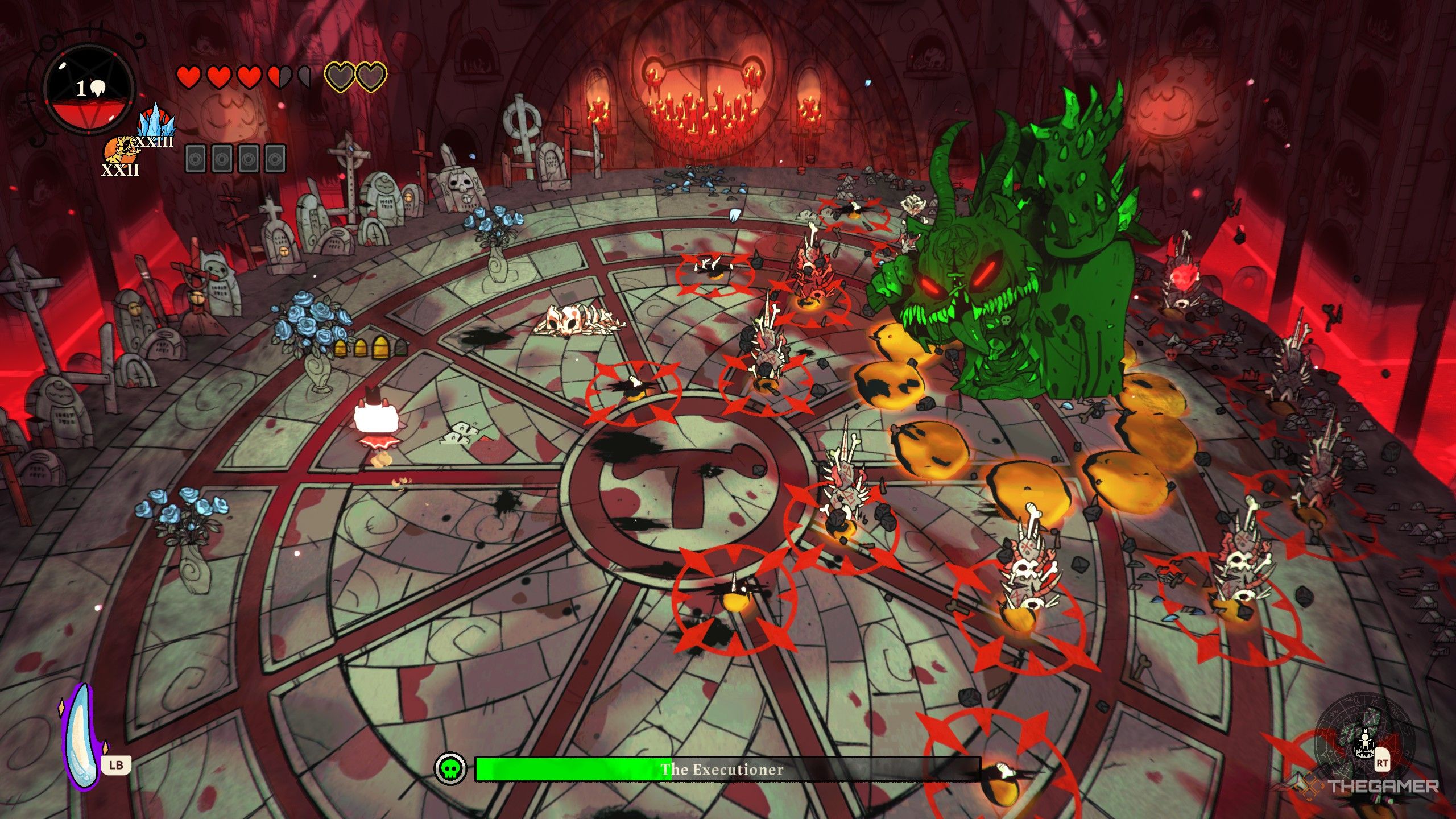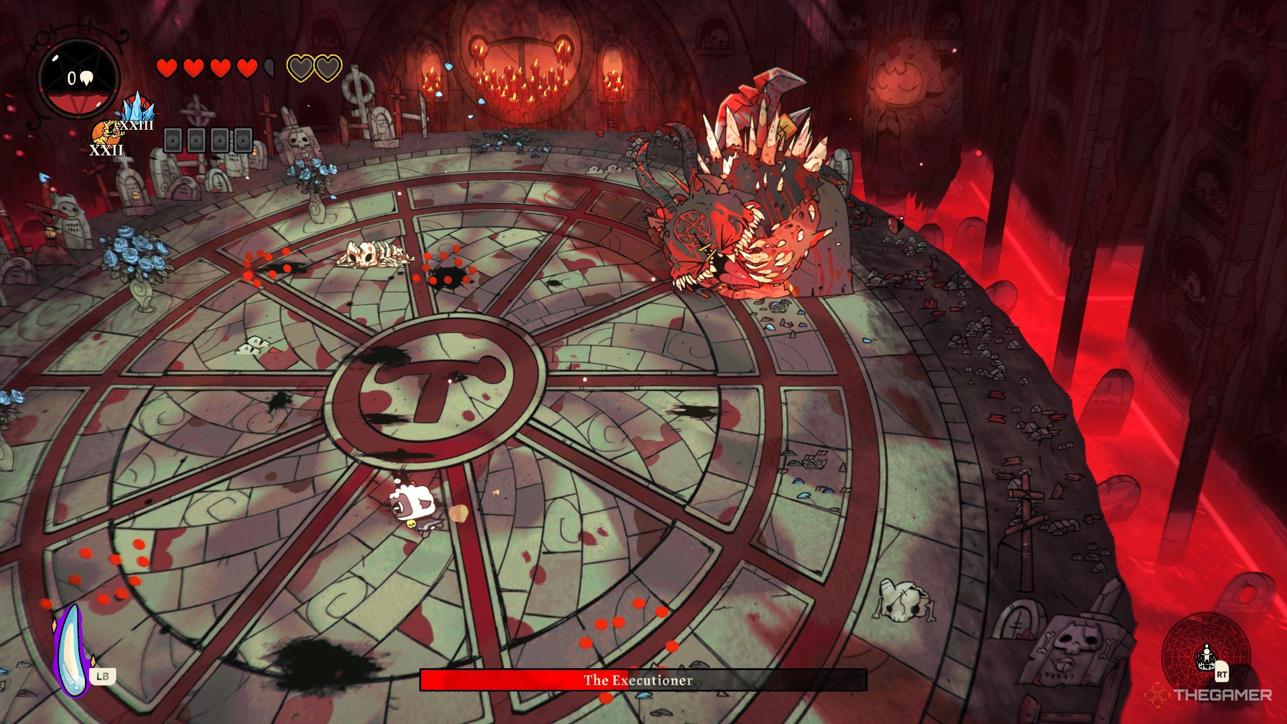 Сражение с Executioner происходит в три стадии. По мере потери здоровья боссом, он становится быстрее и наносит больше урона. Перед началом боя стоит найти оружие, которое наносит большой урон быстро, а также Curse или Relic, который помогает контролировать группы врагов. На протяжении всего боя босс будет постоянно призывать союзников, поэтому умение быстро избавляться от них очень важно.