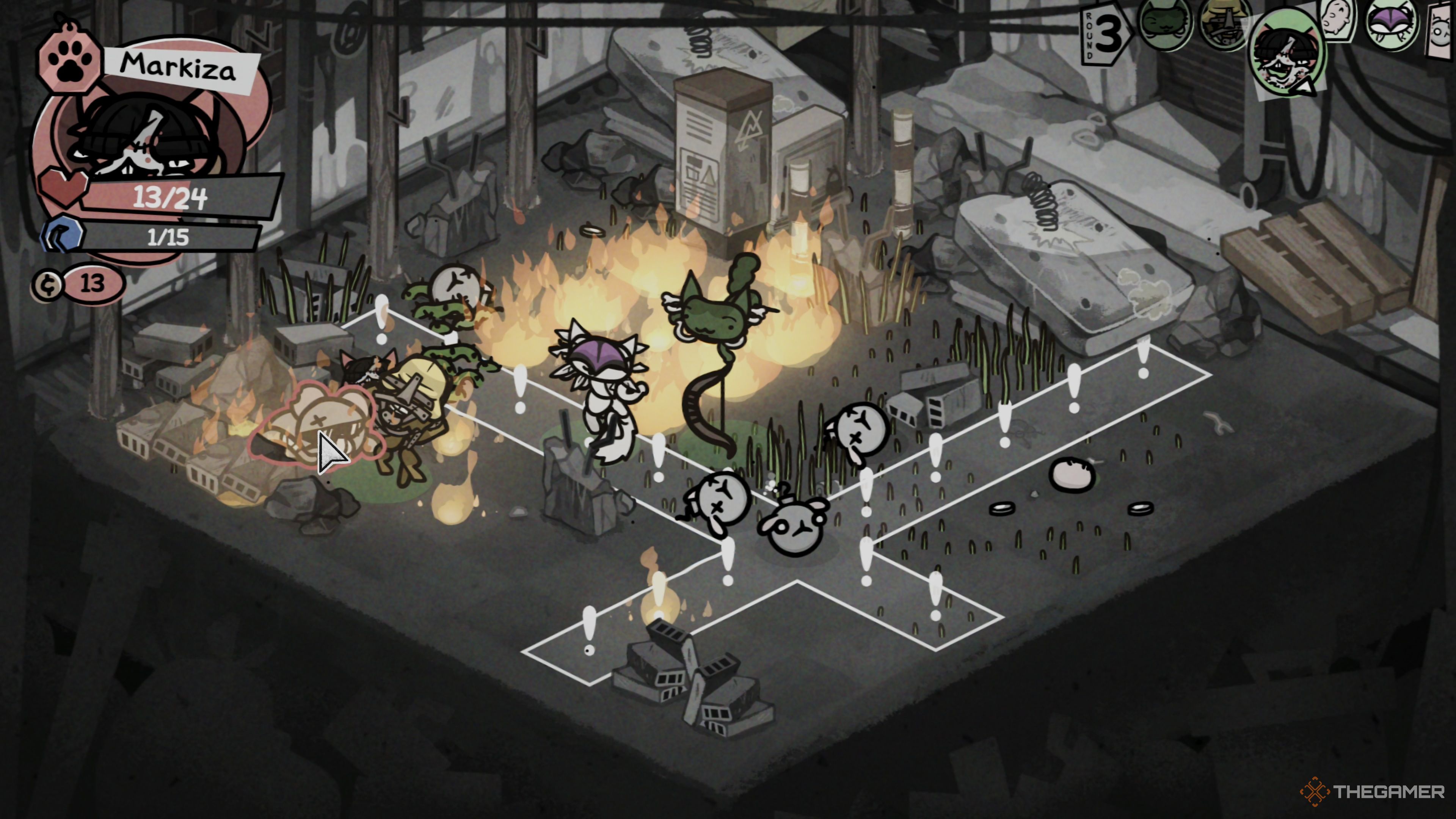 Мы настоятельно рекомендуем взять хотя бы одного персонажа, который может атаковать на расстоянии, например, Охотника или Мага. Они будут необходимы для обезвреживания бомб Радикальной Крысы, пока ваши другие юниты подходят для атаки. Оба ошейники полезны, но обычно одного будет достаточно. Мы считаем, что Охотник особенно эффективен из-за своей большой дальности и способности наносить значительный урон при необходимости.