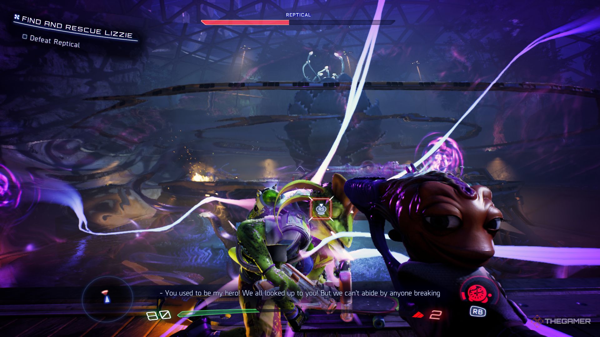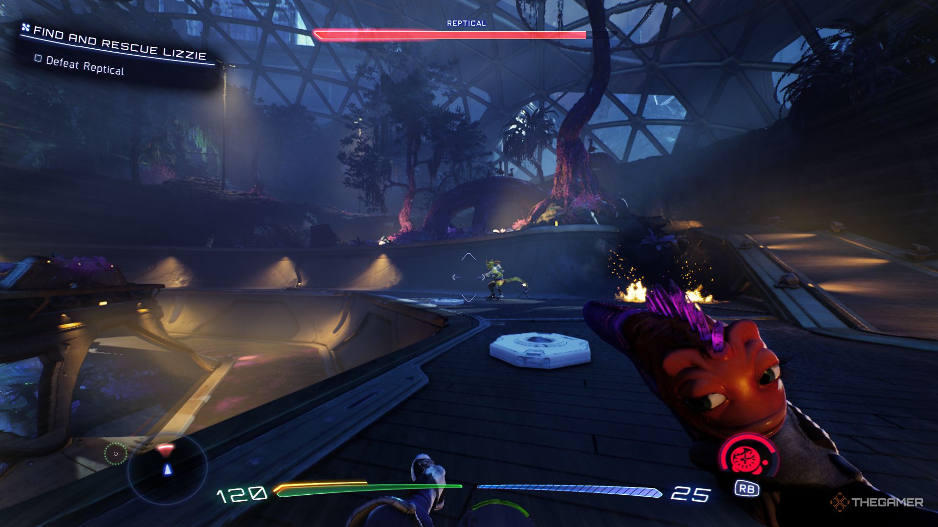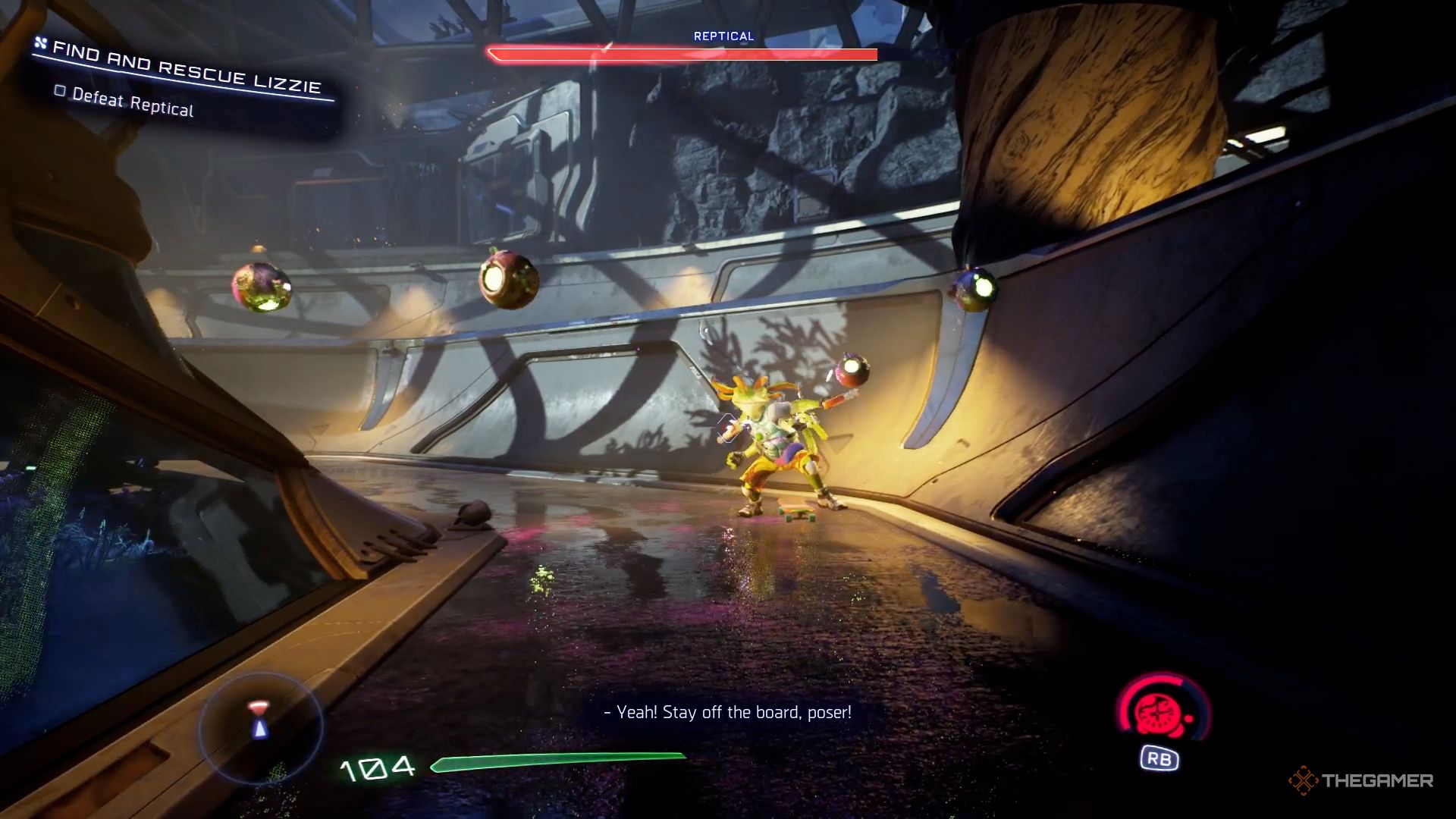 Ты начинаешь кататься на скейтборде прямо перед встречей с этим противником, что намекает на то, что он тебе понадобится в бою. Скейтборд позволяет тебе соответствовать скорости Рептикала, облегчая преследование и атаку на него. Хотя это и самый распространенный способ нанесения ему урона, ты не обязан полагаться только на него.