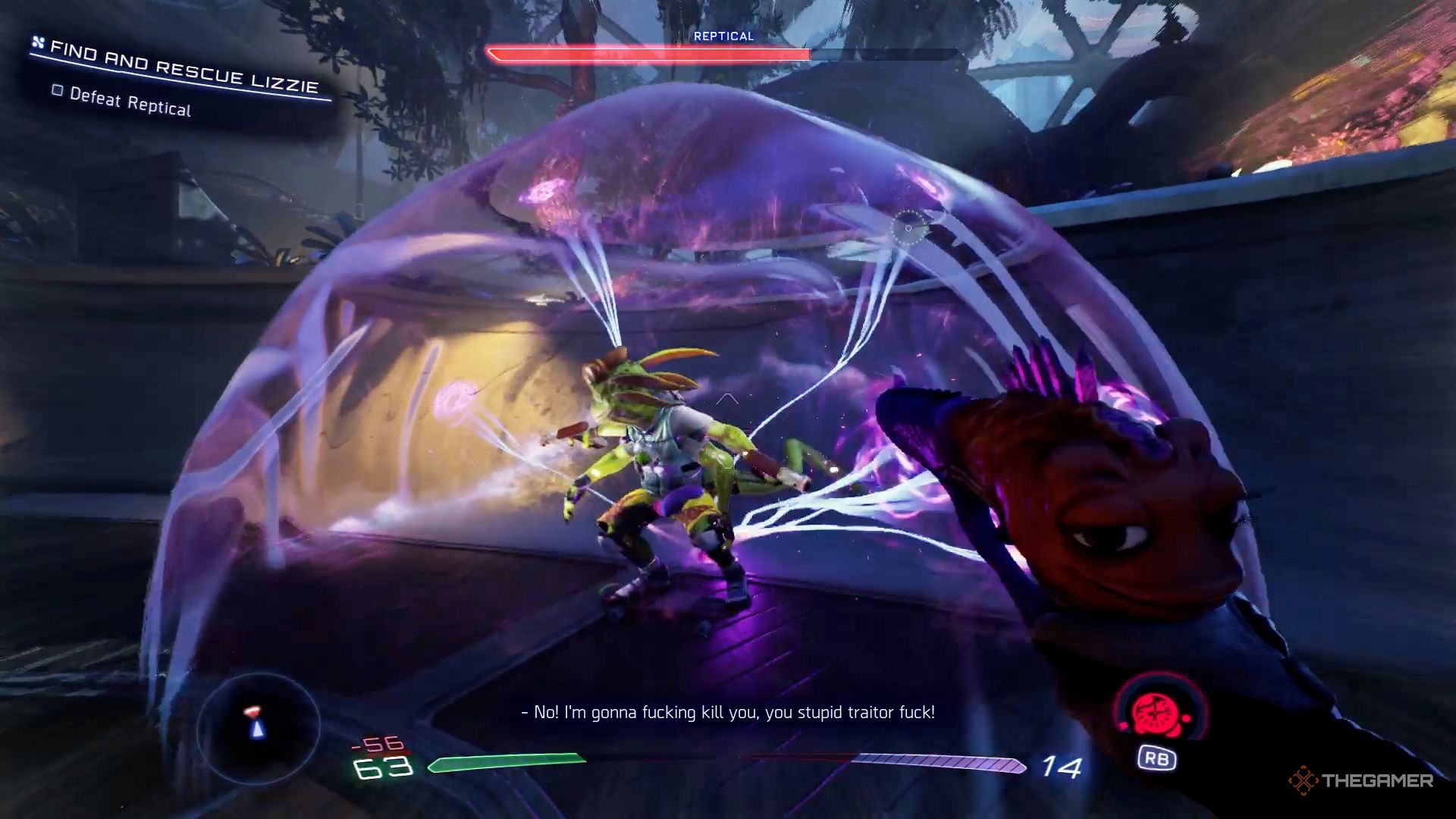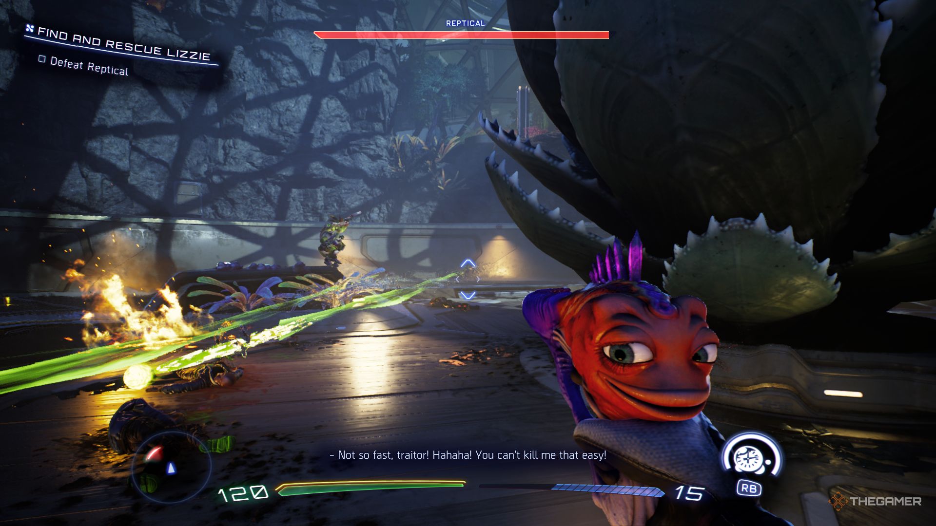 Time Bubble от Sweezy — отличный способ прервать действия Reptical. Если вы целитесь чуть впереди его движения, это значительно замедлит его на несколько секунд, позволяя вам безопасно атаковать. Gus особенно полезен в этой ситуации, так как он наносит много урона с каждым ударом.