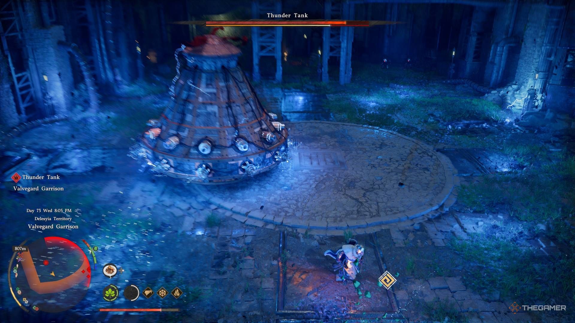 Вы столкнётесь с Thunder Tank к концу Crimson Desert во время строительства транспортера Марни. Чтобы получить его, вам нужно захватить три форта и найти три ключа транспортера — один из которых охраняет этот могущественный босс. Thunder Tank — сложный противник, использующий атаки с большой площадью поражения и разрушительный рывок, который может быстро вас победить, если вы не будете осторожны.
