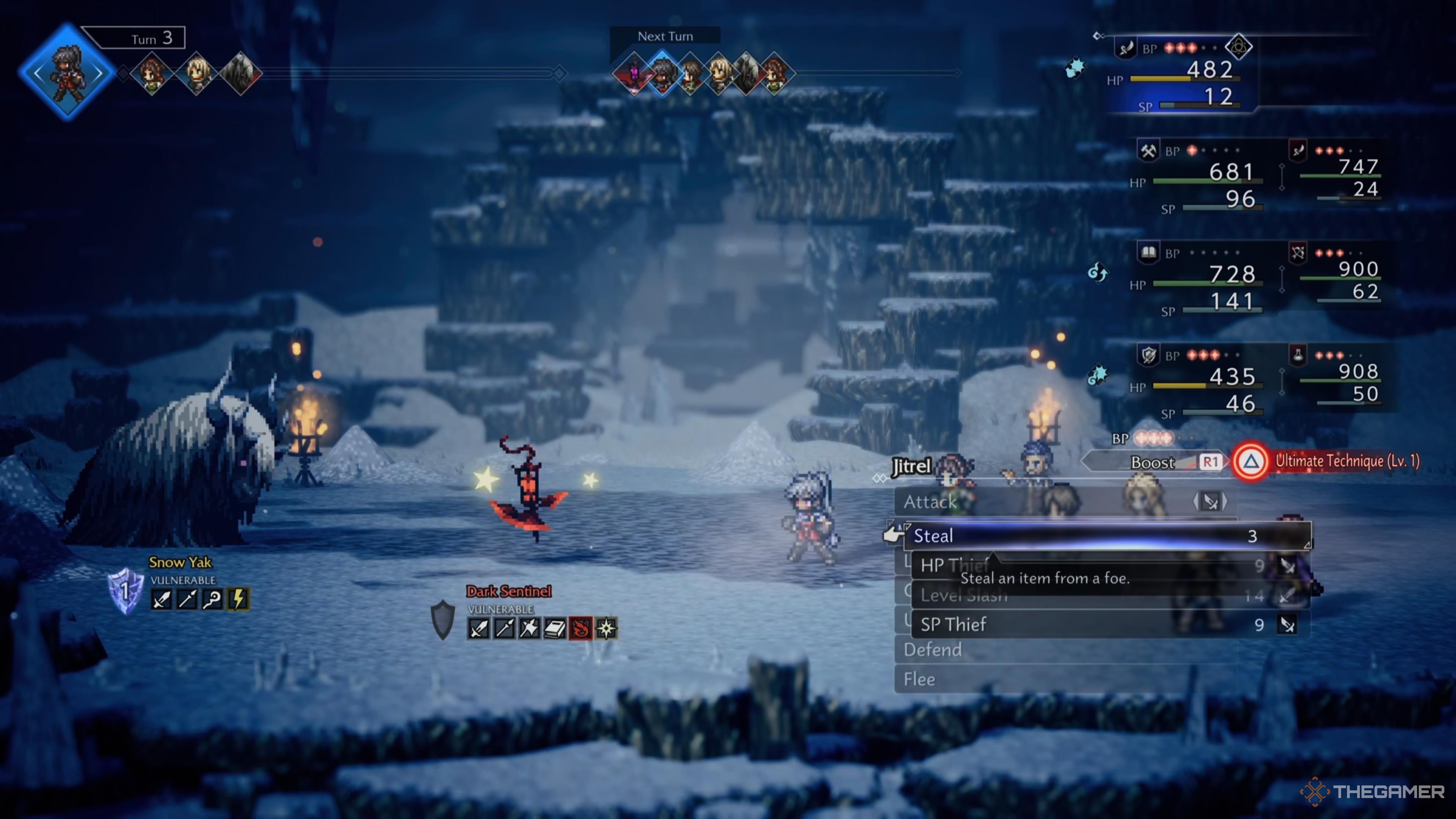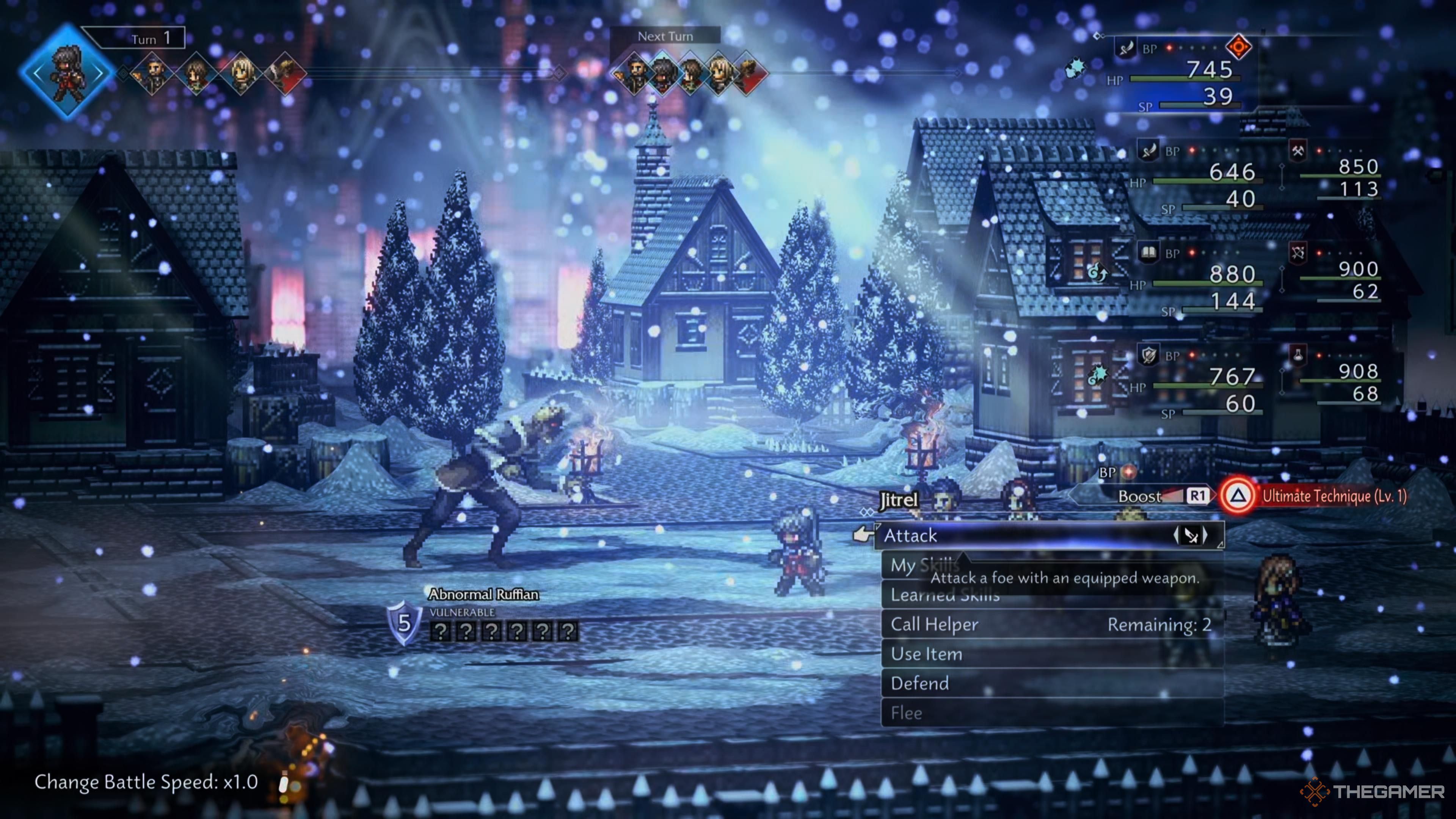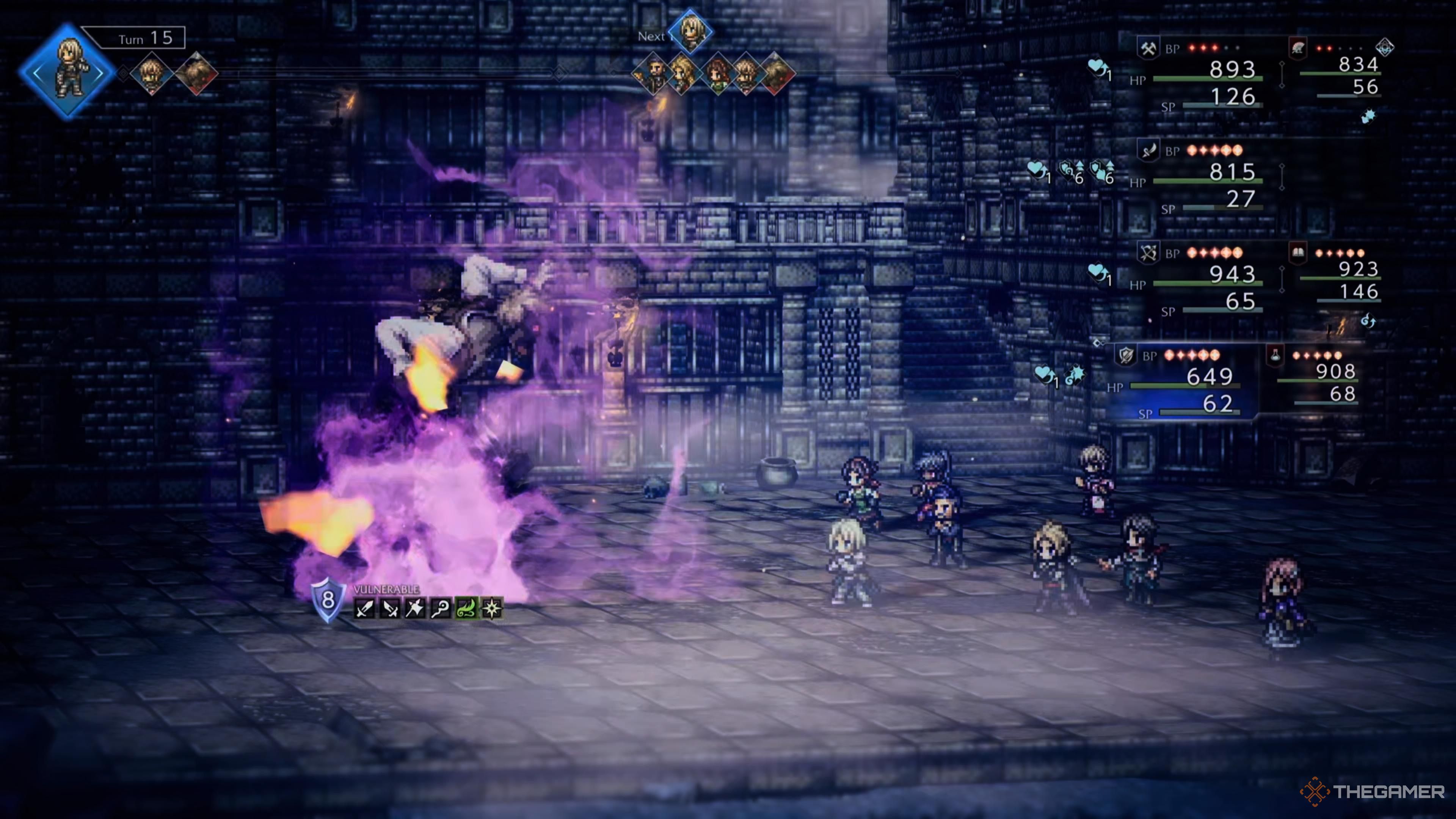 Velnorte теперь присоединяется к битве! Он будет поддерживать вашу команду из тыла, используя свои навыки для улучшения способностей каждого. Насколько он эффективен, зависит от того, сколько персонажей вы уже завербовали, но его основная задача — усилить отряд следующими навыками: