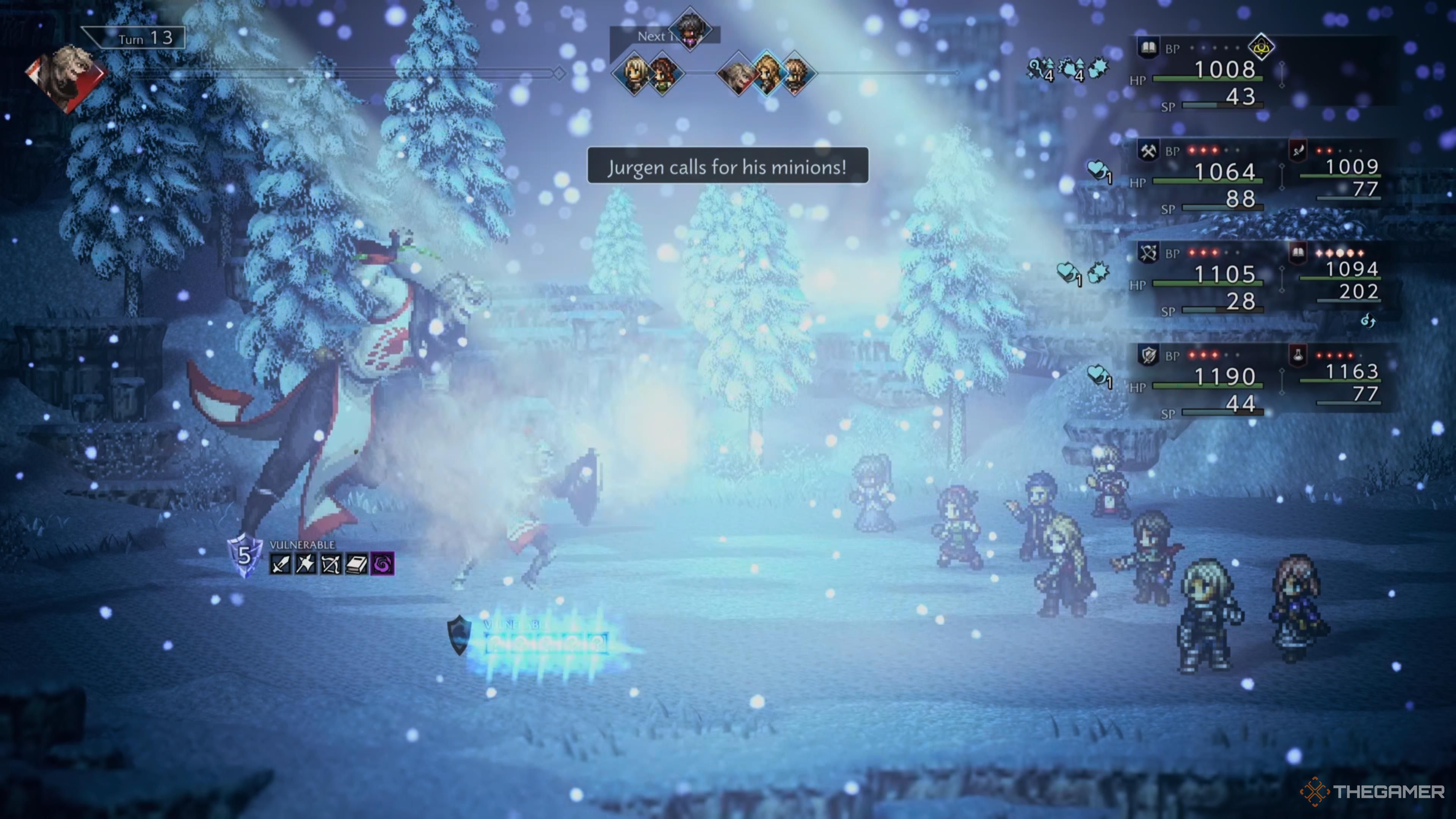 Если вы позволите здоровью Юргена опуститься слишком низко, он использует мощную атаку, которая оставит одного из ваших товарищей по команде с 1 очком здоровья. И если вы ещё не победили Scarlet Wings, они немедленно последуют атаками, которые могут поставить вашу команду в серьёзные проблемы.