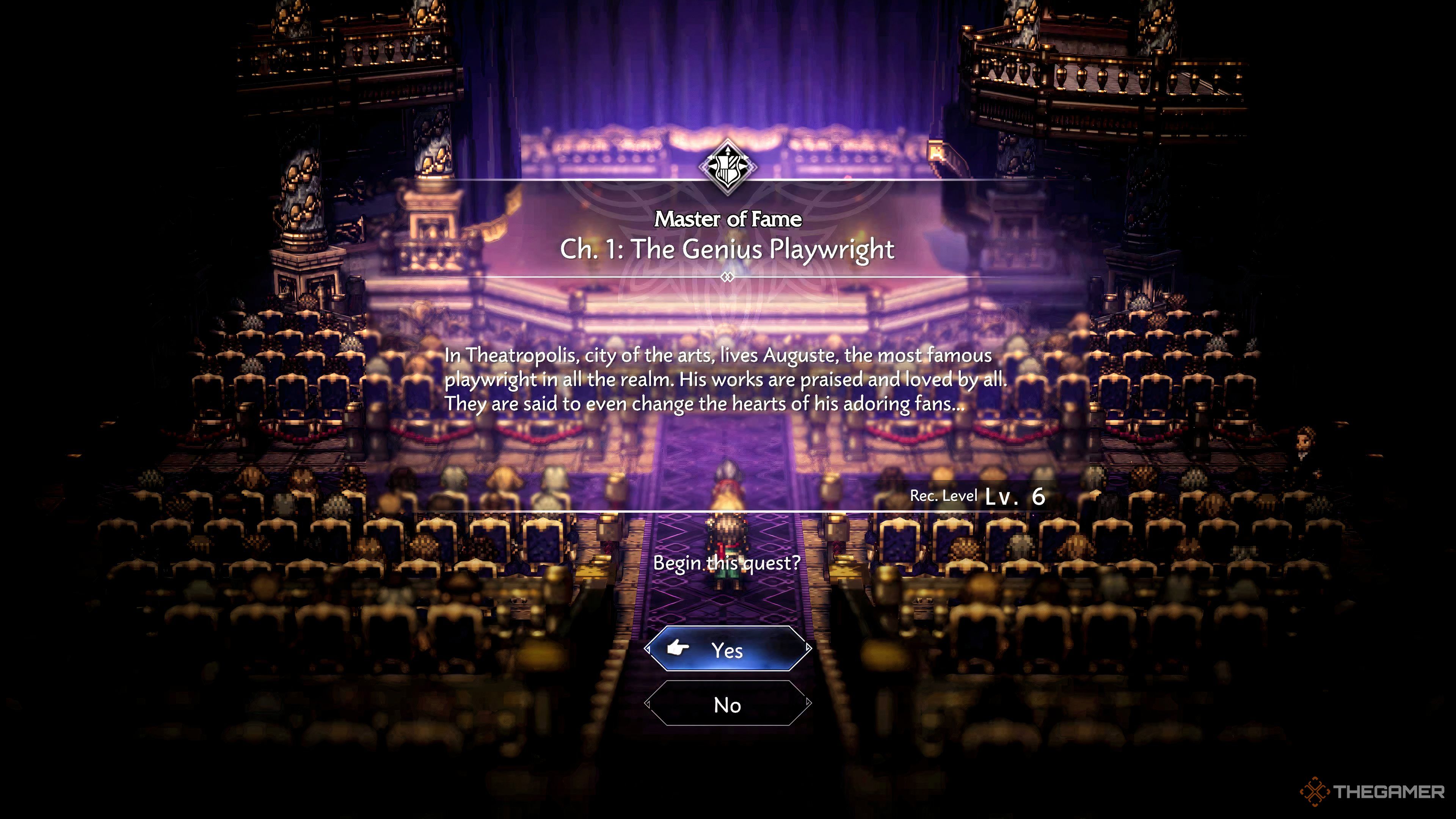 После завершения вступительной части Octopath Traveler II и выбора пути вашего персонажа, вы оказываетесь вовлечены в поиски признания. Этот путь приводит вас к противостоянию с человеком, ответственным за смерть вашей матери, и к раскрытию тревожной природы Огюста, блестящего, но неуравновешенного драматурга. Он обустроил свой дом в Театрополисе, городе, полностью поглощенном искусством – и, по-видимому, им самим.