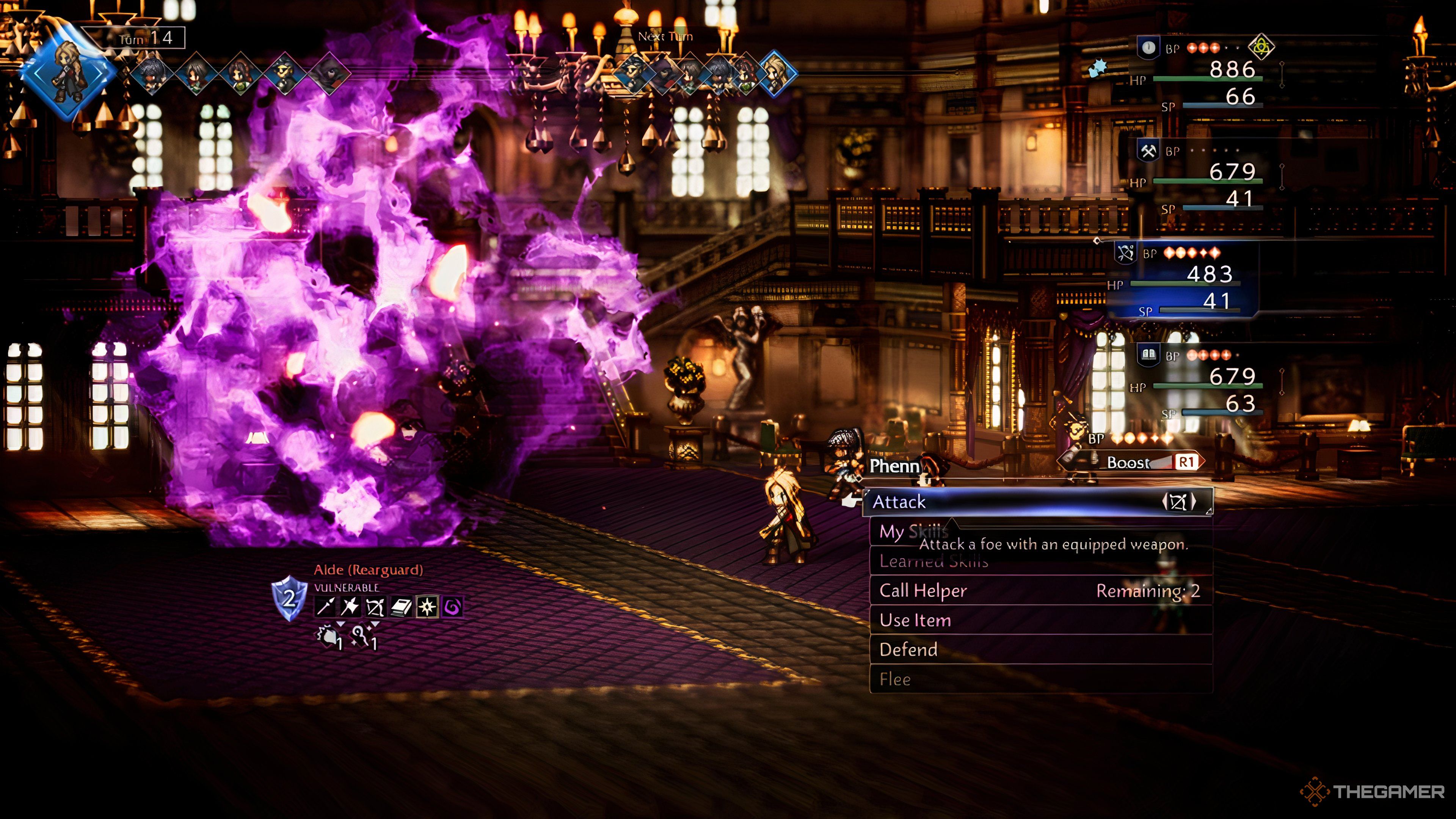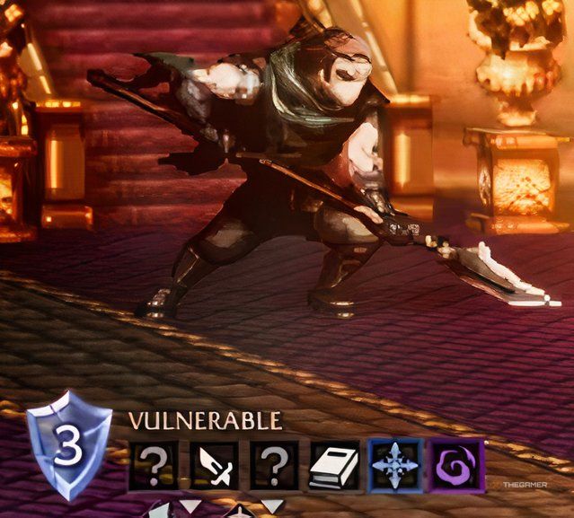 Оба противника уязвимы к атакам тьмой, поэтому Алексия должна использовать их, чтобы нанести значительный урон. Стия продолжит оказывать лечение, но она также может помочь в победе над врагами – используя свой топор против Защитника и свой кинжал против Авангарда.