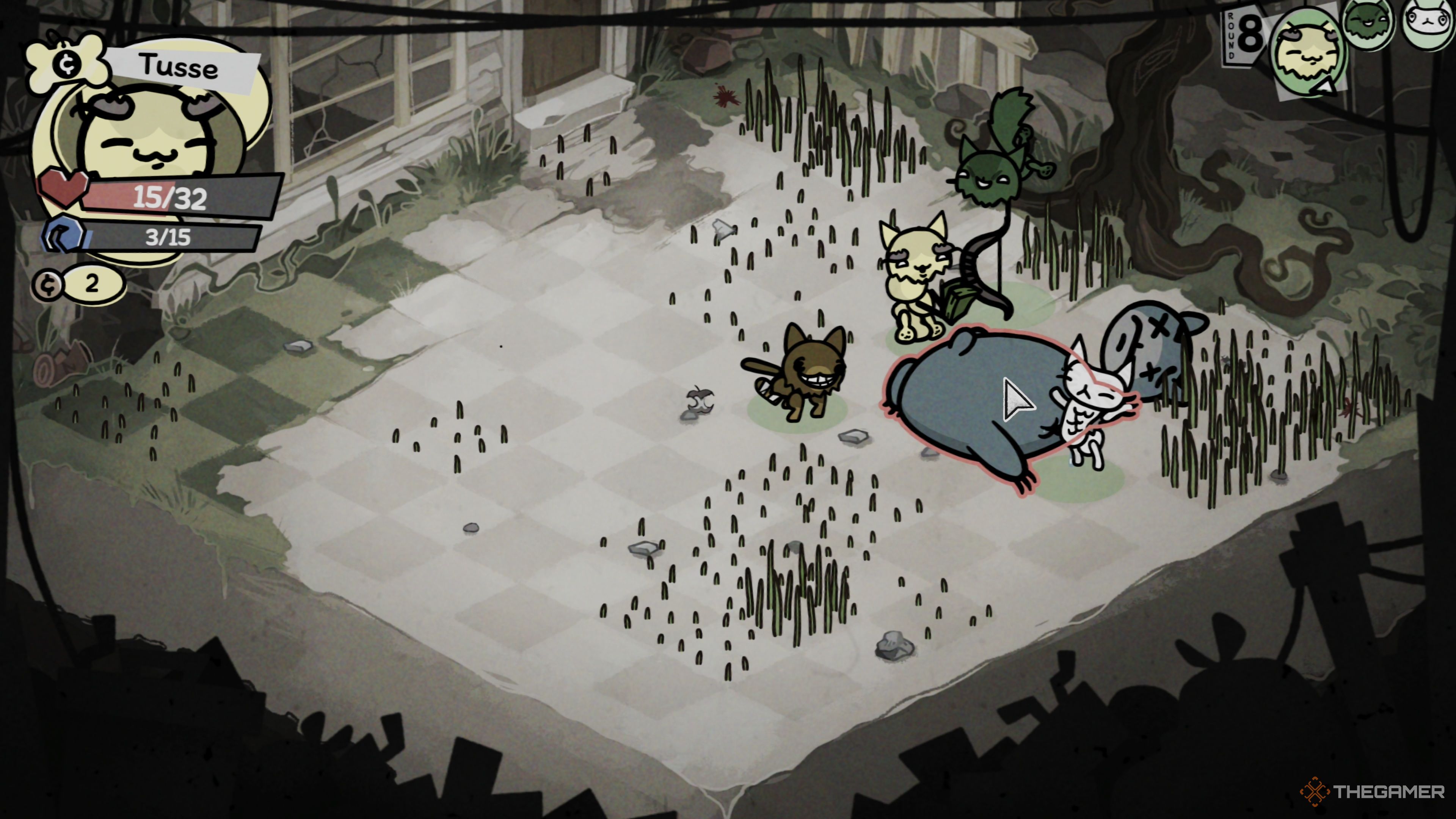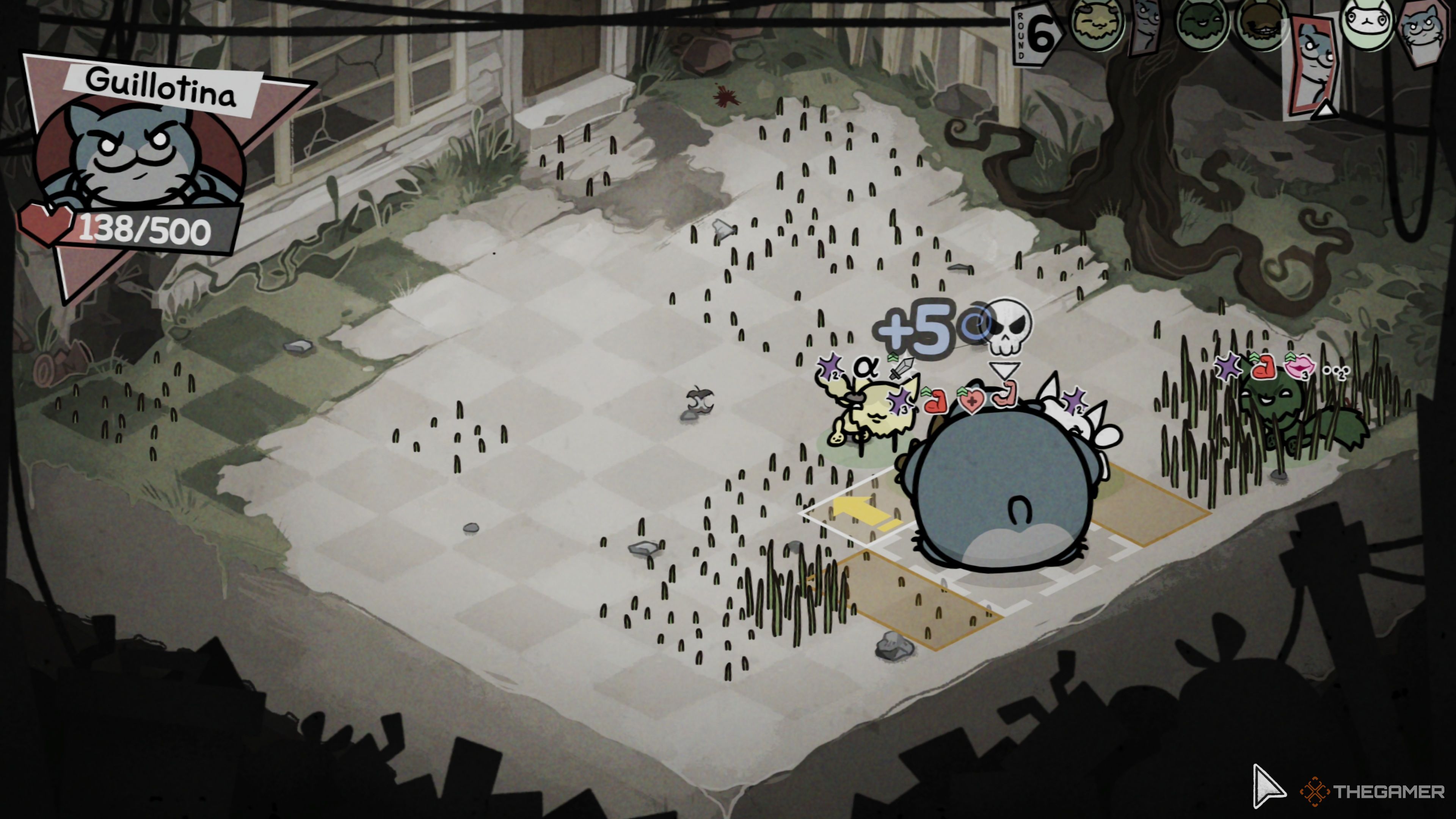 Как вы, вероятно, догадались, уникальные способности Гильотины тесно связаны с её ограниченным набором атак – она использует всего около трёх различных атак. Это типично для боссов в Mewgenics. Однако, что отличает её, так это её невероятно большое количество здоровья – 500 HP – и то, как часто она атакует, обычно около трёх раз в каждом раунде.