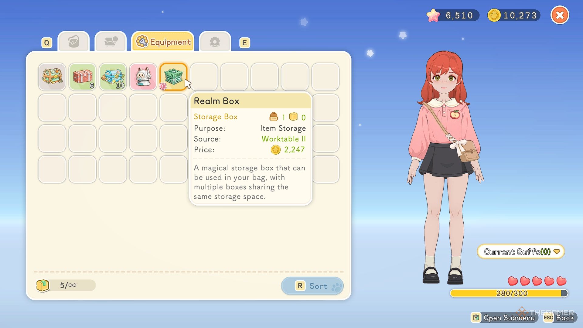 Позже в игре вы обнаружите, что Realm Box невероятно полезен. Вы можете разместить его на своих участках, чтобы легко получать материалы, не таская их туда-сюда, особенно учитывая, что вы, вероятно, будете владеть несколькими участками по всему острову.