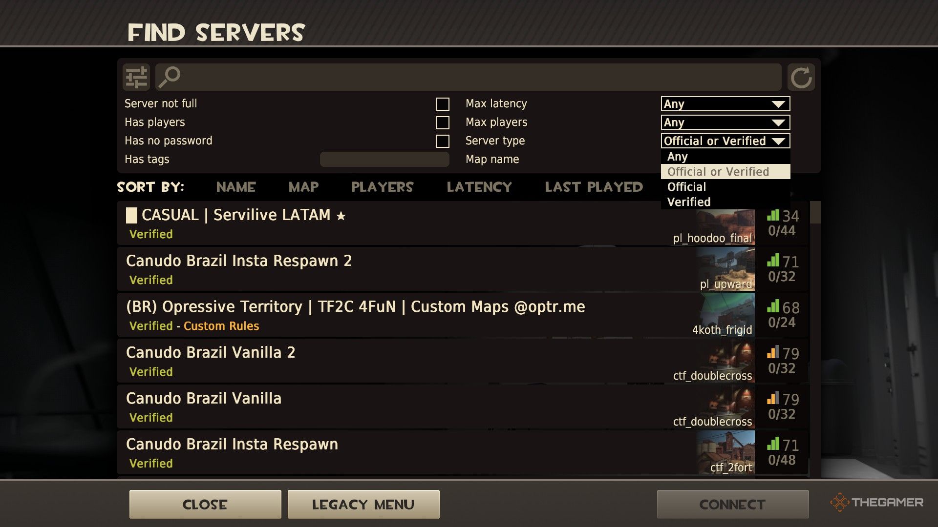 Вы можете добавить фильтры Официальный или Подтвержденный при поиске серверов.